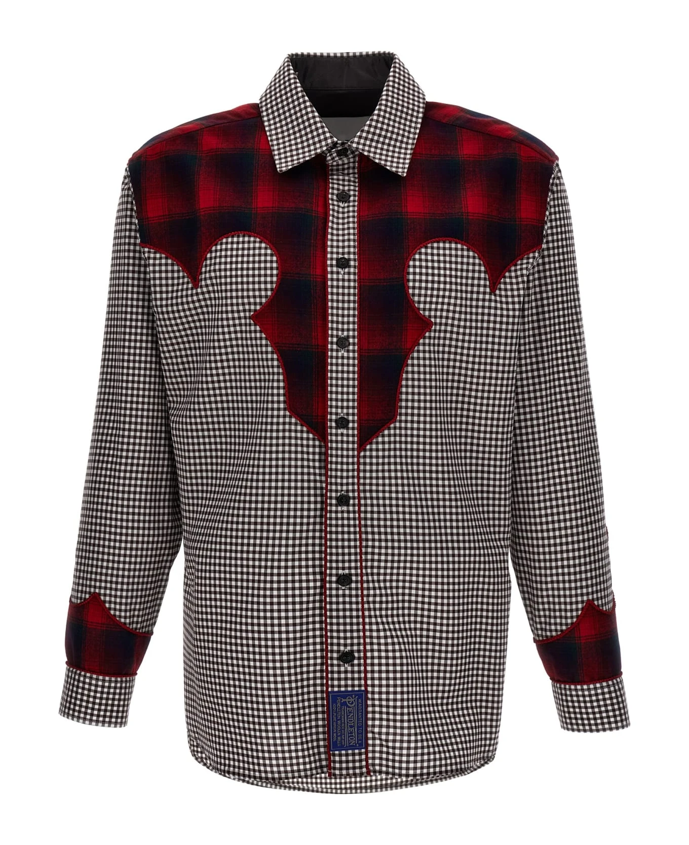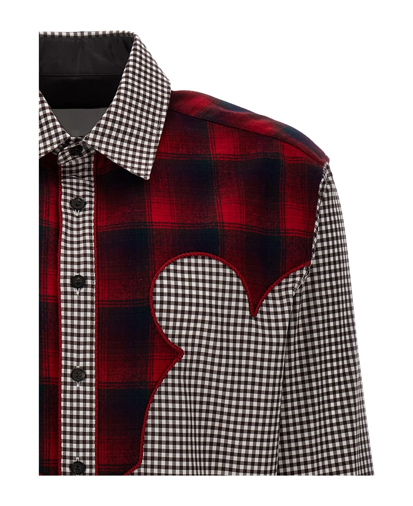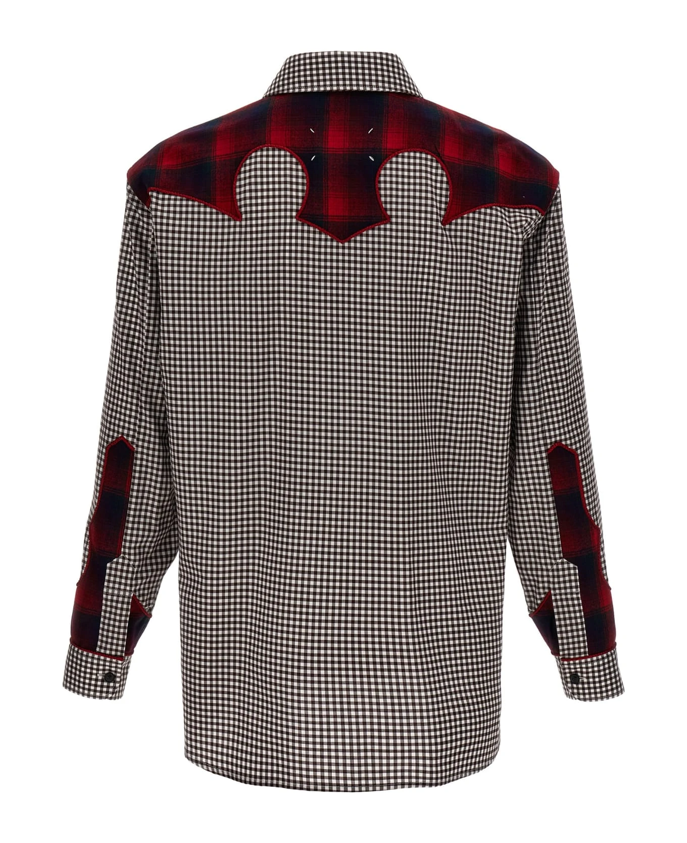 Vichy western shirt in cotton poplin with contrasting tartan fabric details.