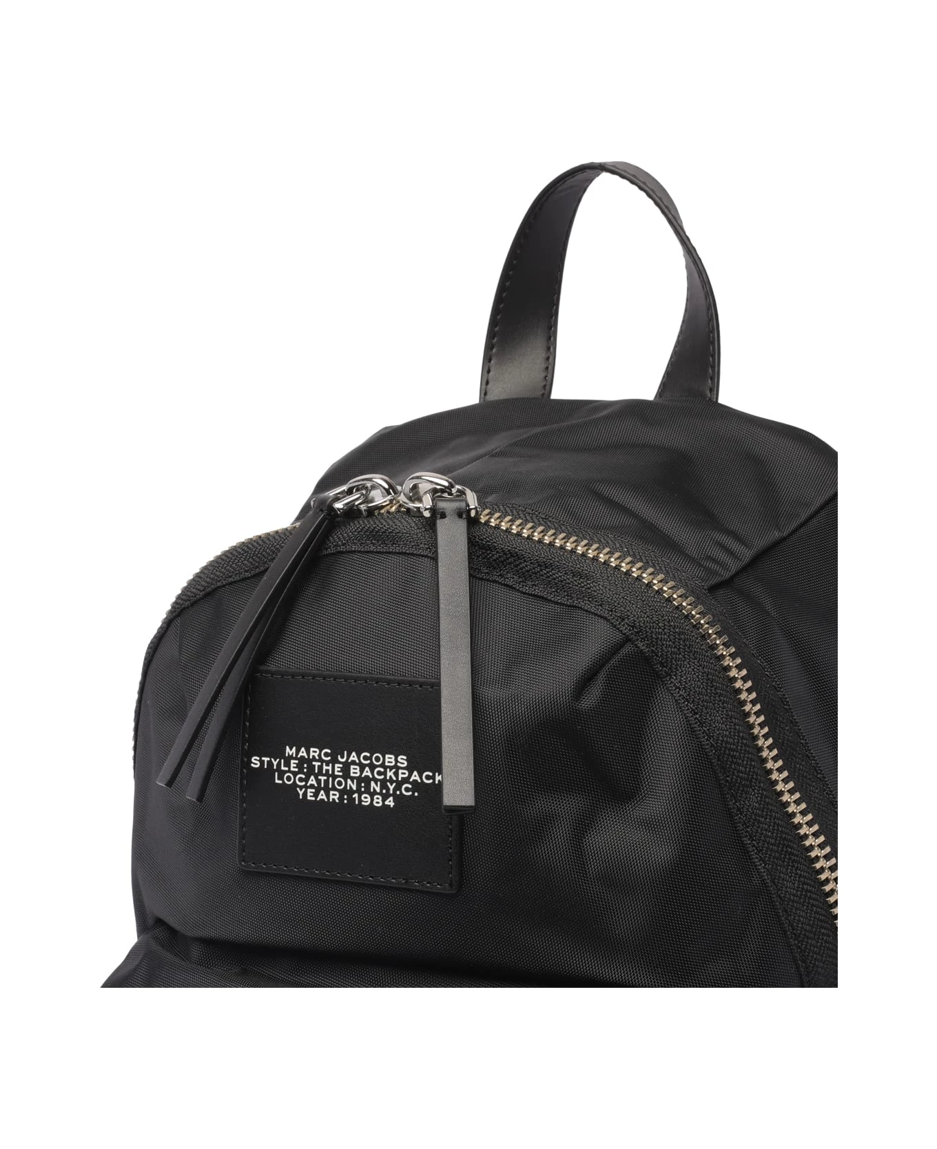 Marc Jacobs black The Large backpack, frontal patch logo, zip closure, 2 external pockets with zip, one handle, adjustable shoulder strap