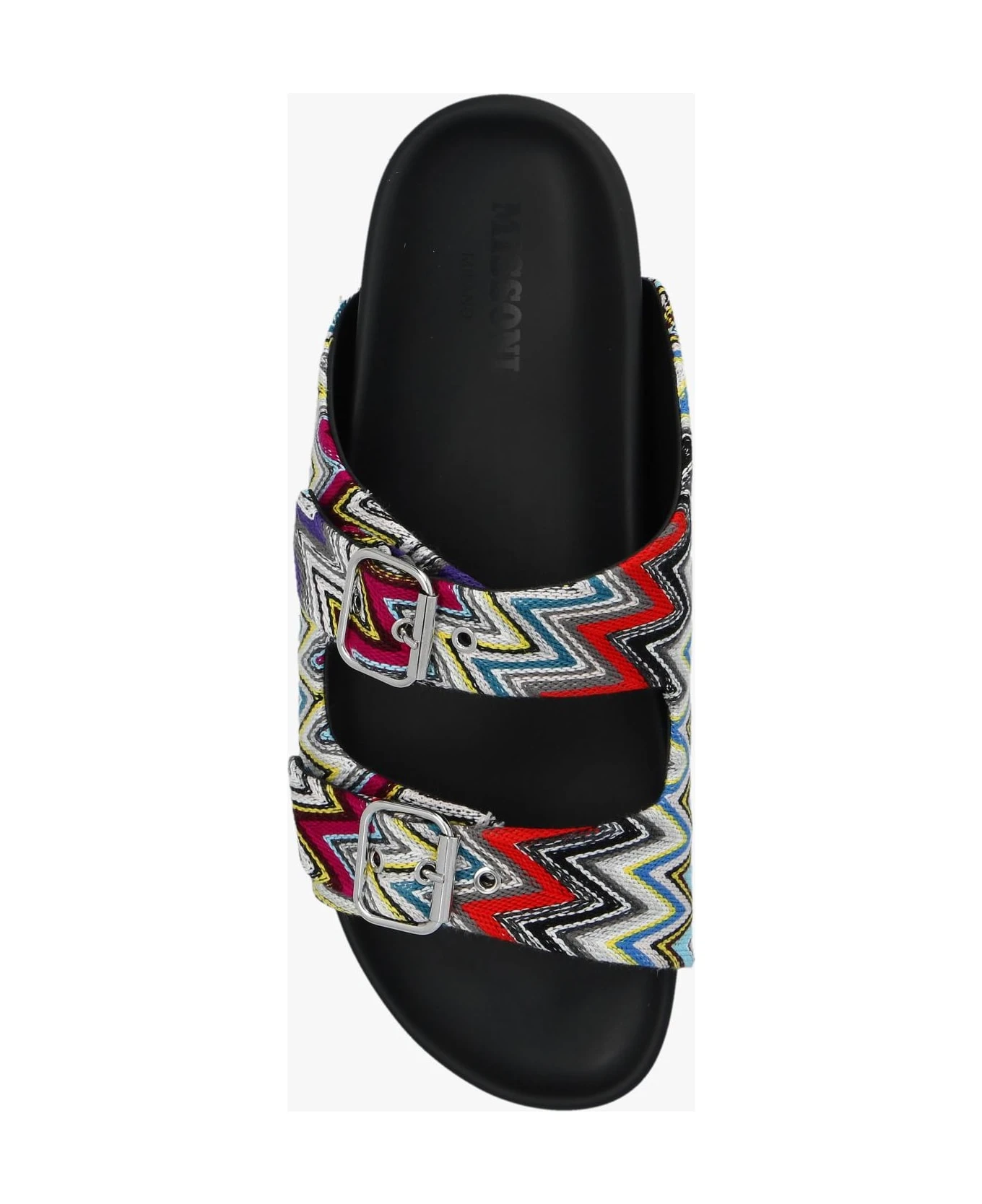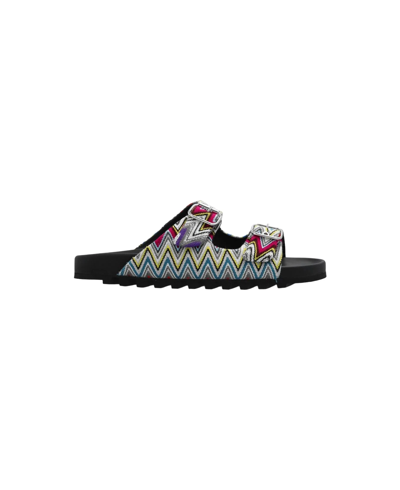 Multicoloured slides from Missoni. Crafted from fabric decorated with the brand’s signature zigzag motif, this model sits on a black VIBRAM® rubber sole and features adjustable straps with silver-tone buckles.
