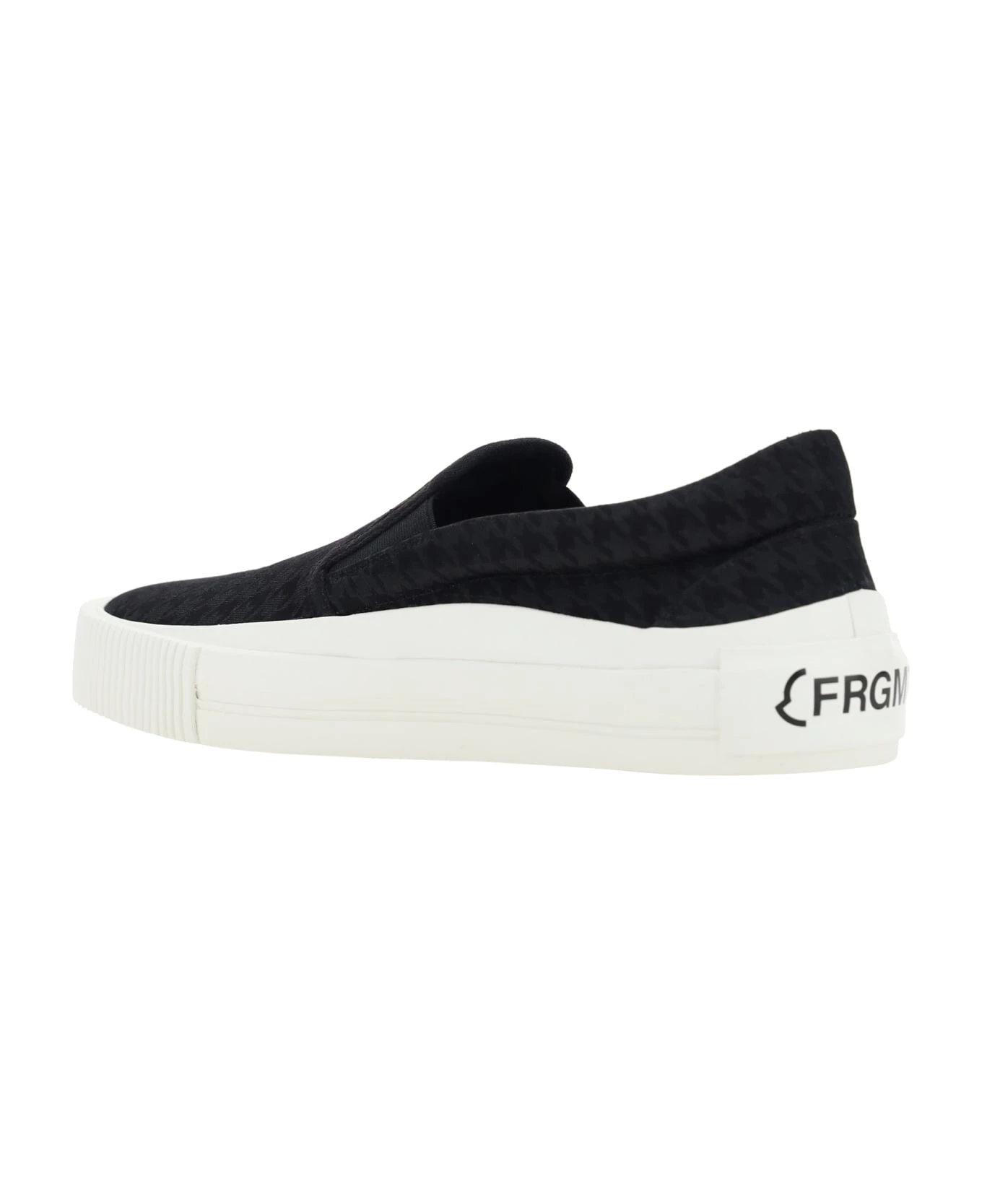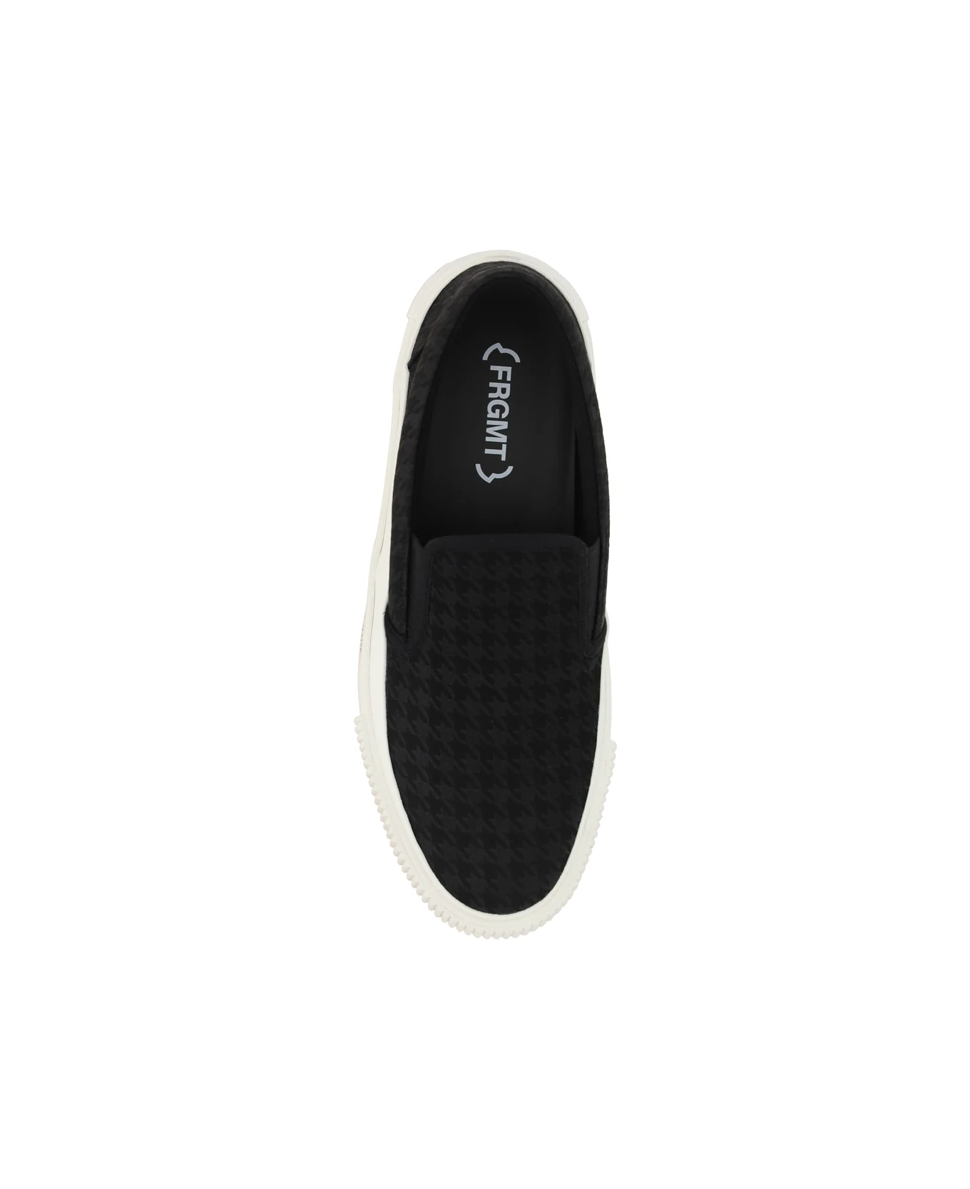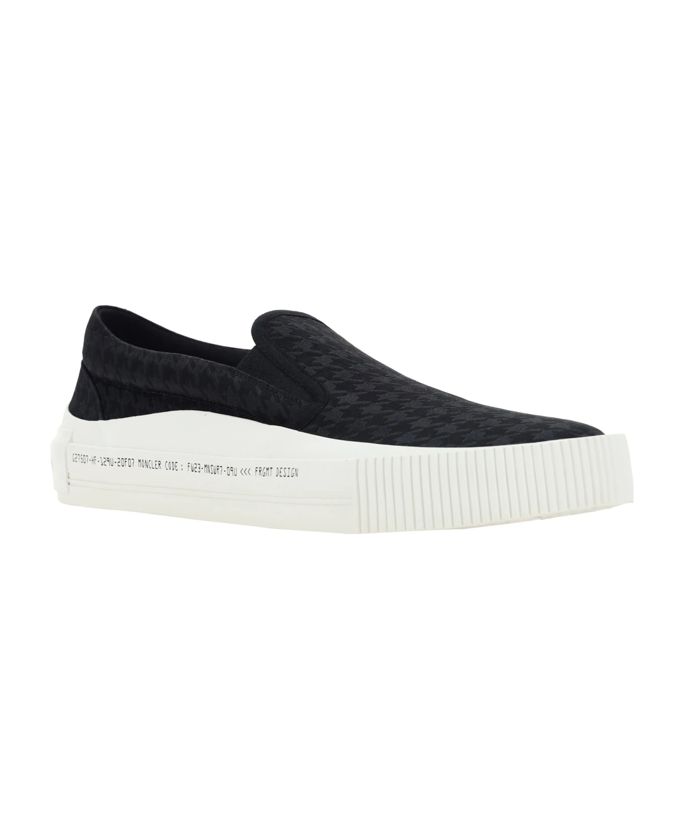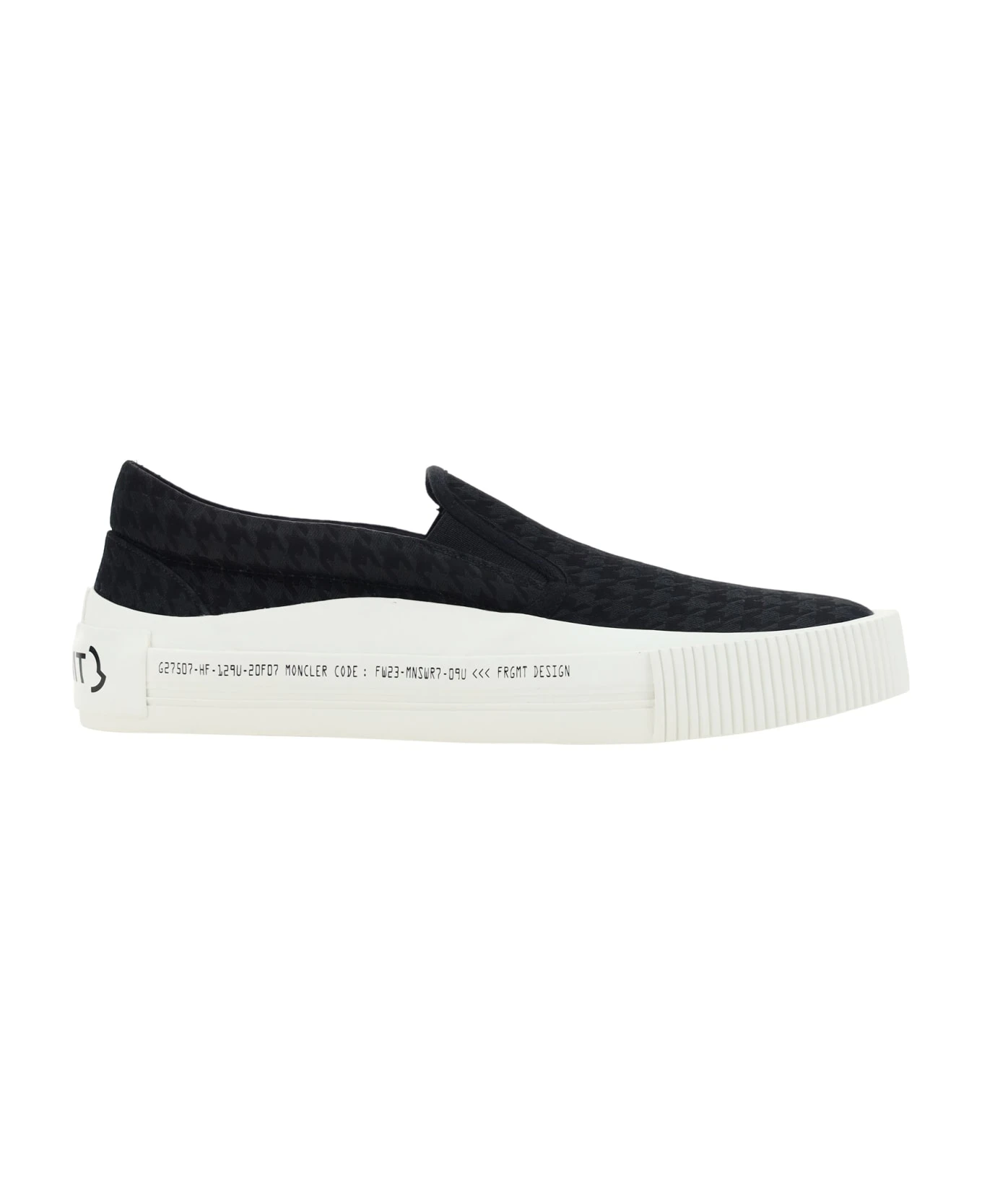Vulcan sneakers by moncler fragment, slip-on style, fabric front tray, round toe, press-stamped logo on front tongue, contrasting iconic brand monogram on sole, contrasting platform sole with knurled details.