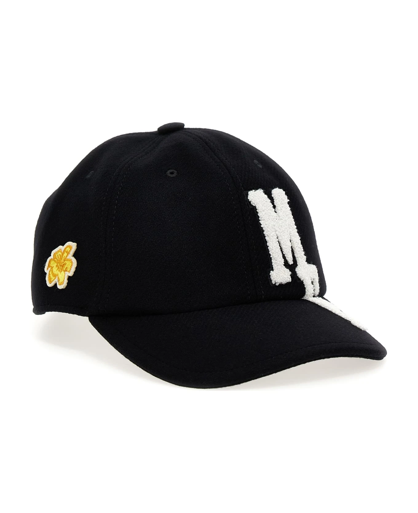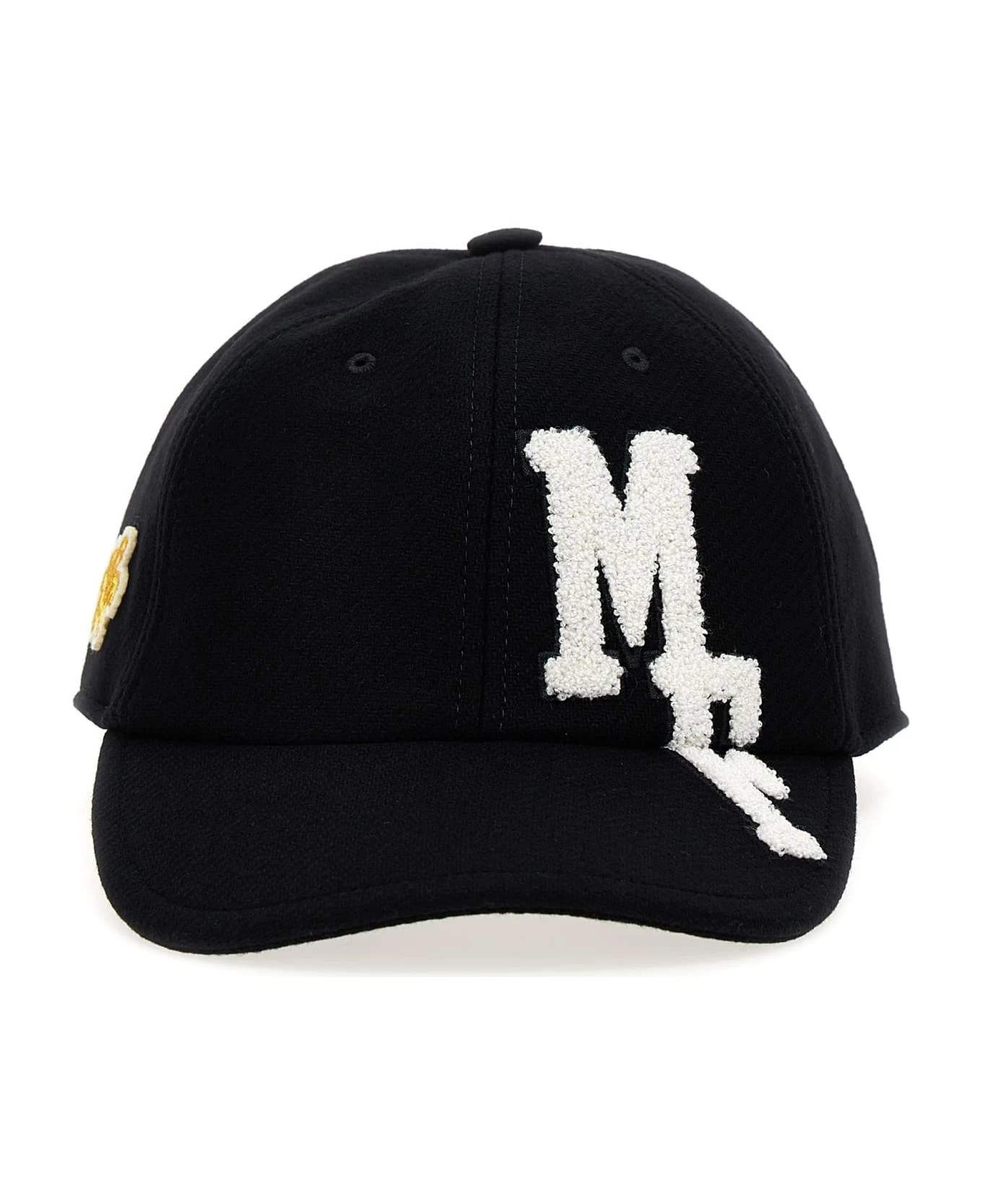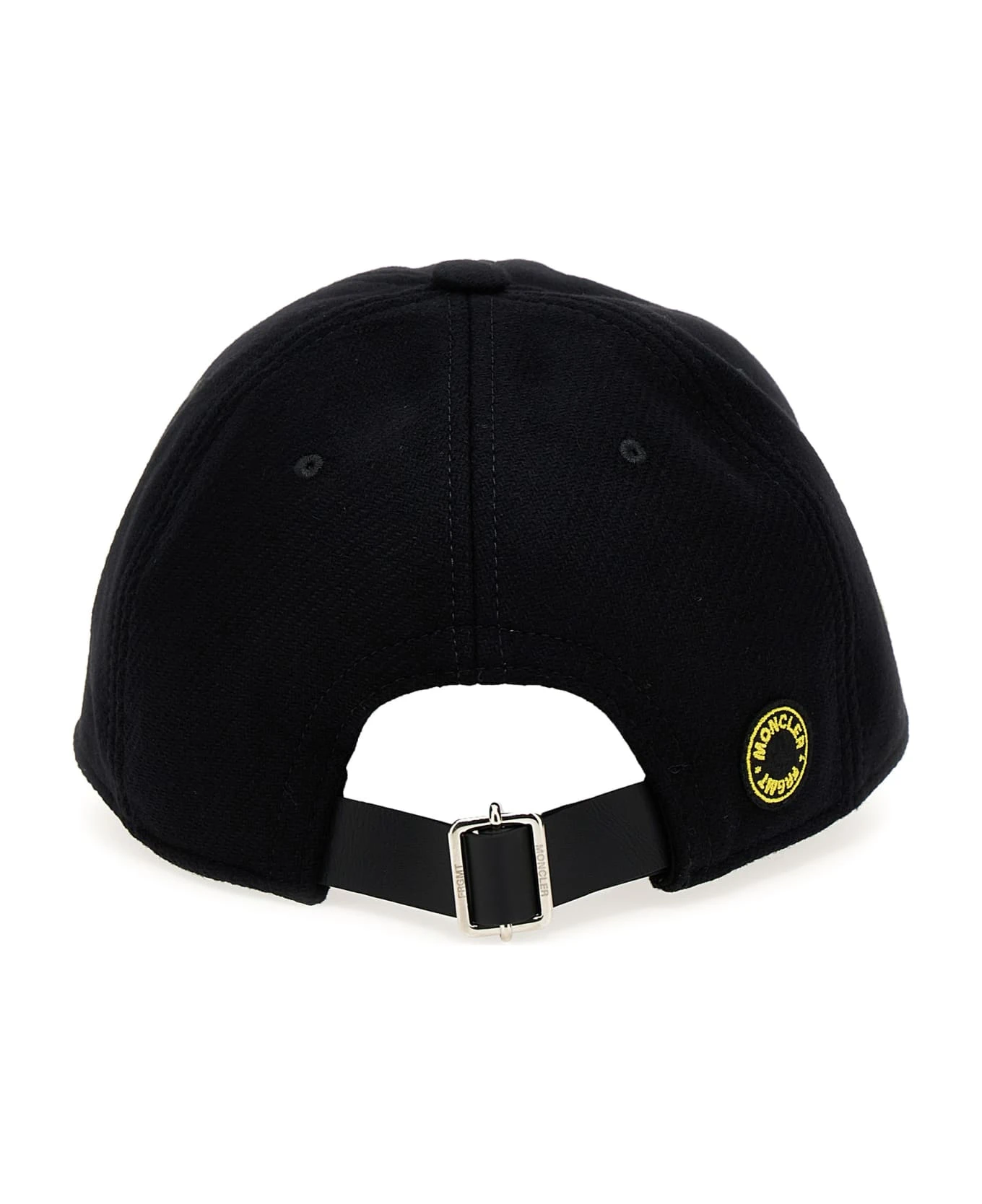 Moncler Genius x Fragment wool blend cap with patches, a with adjustable leather strap.