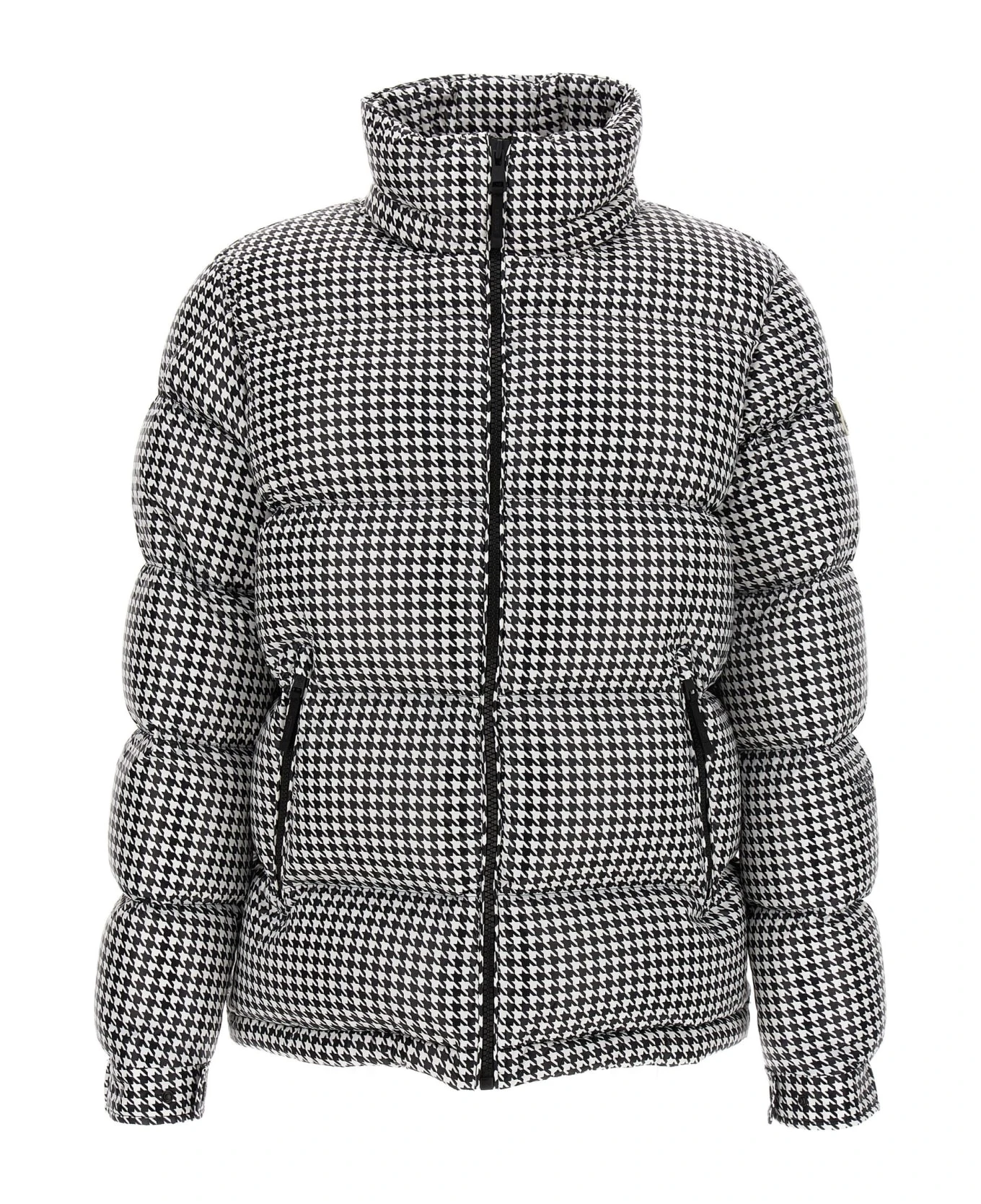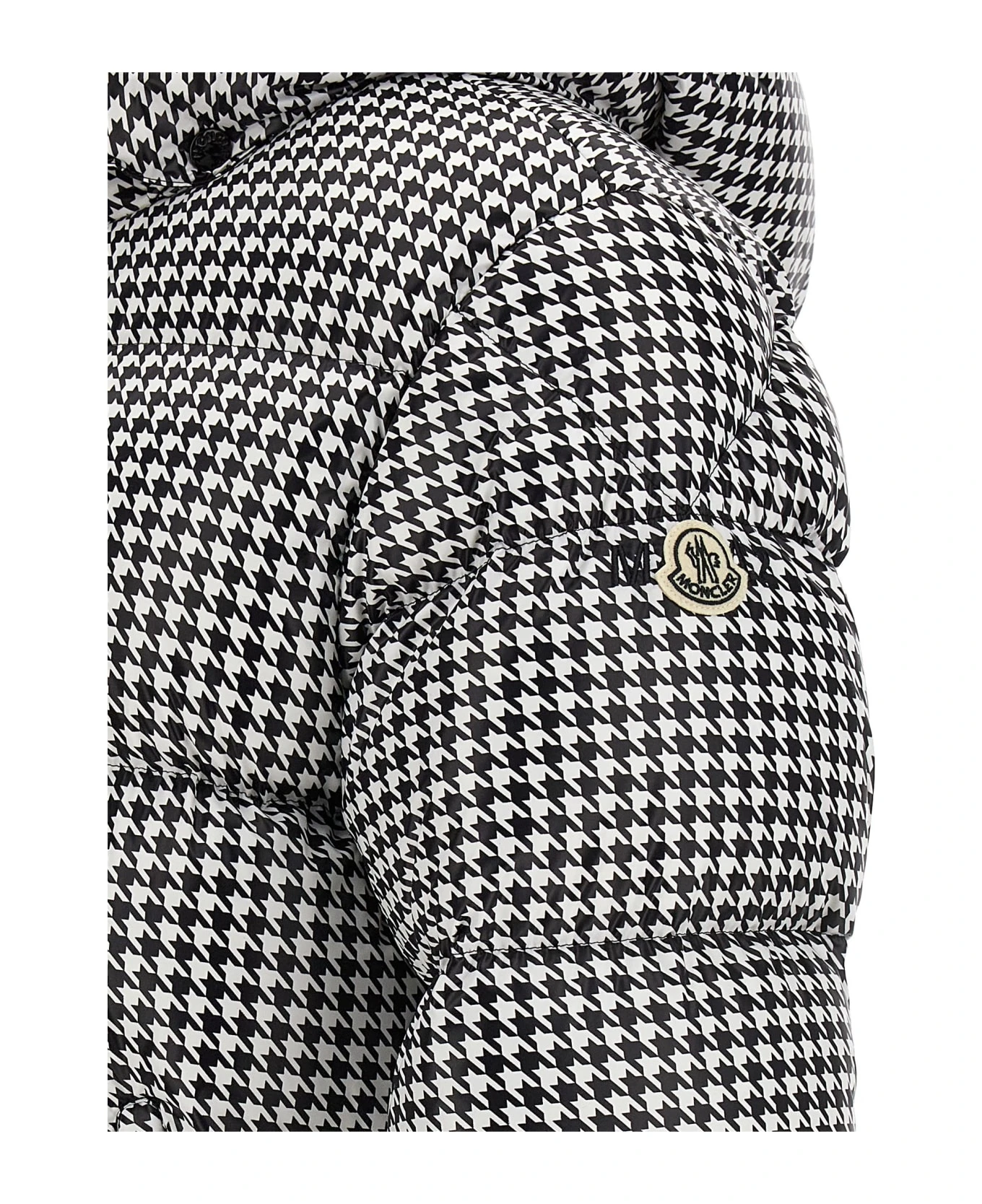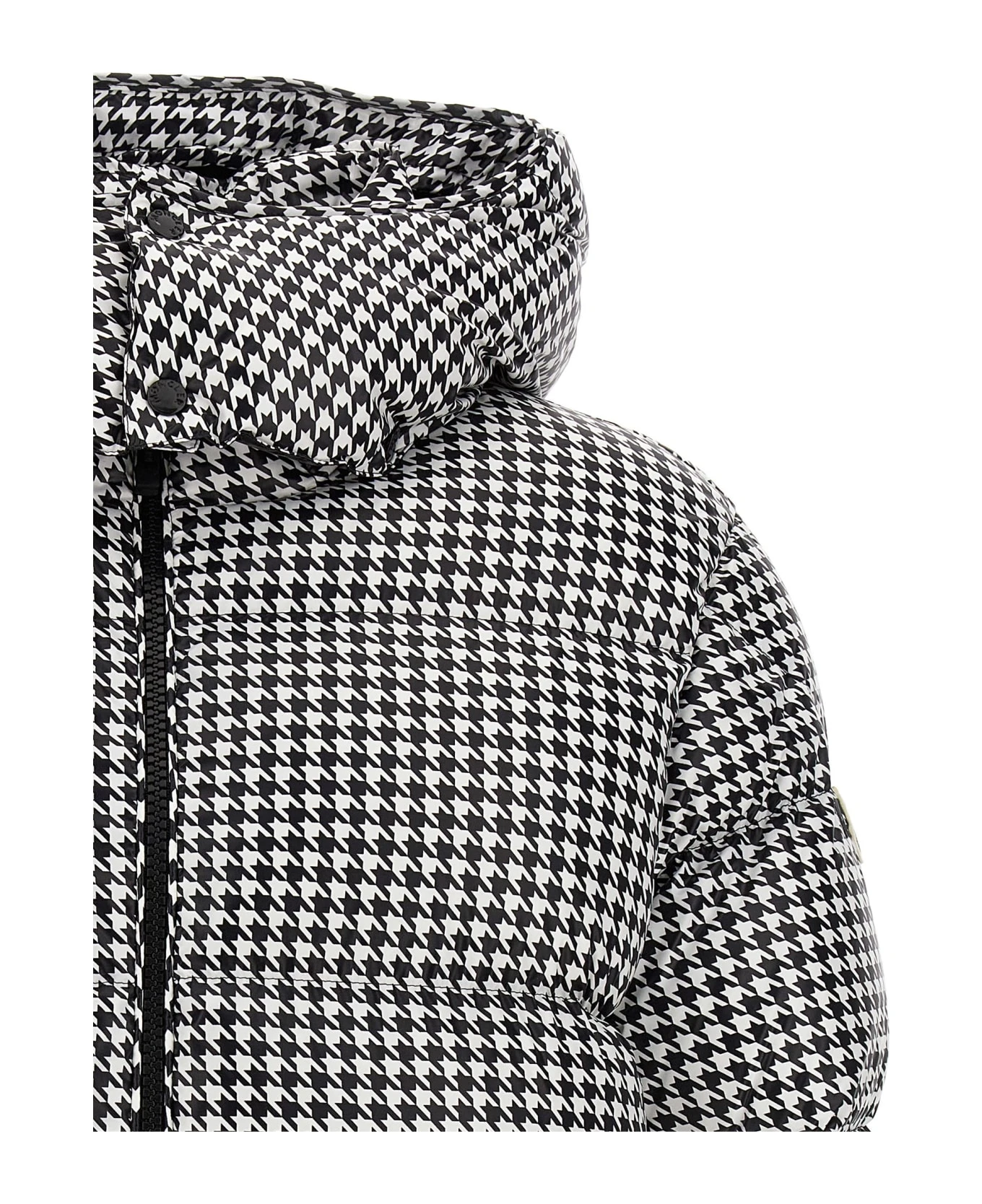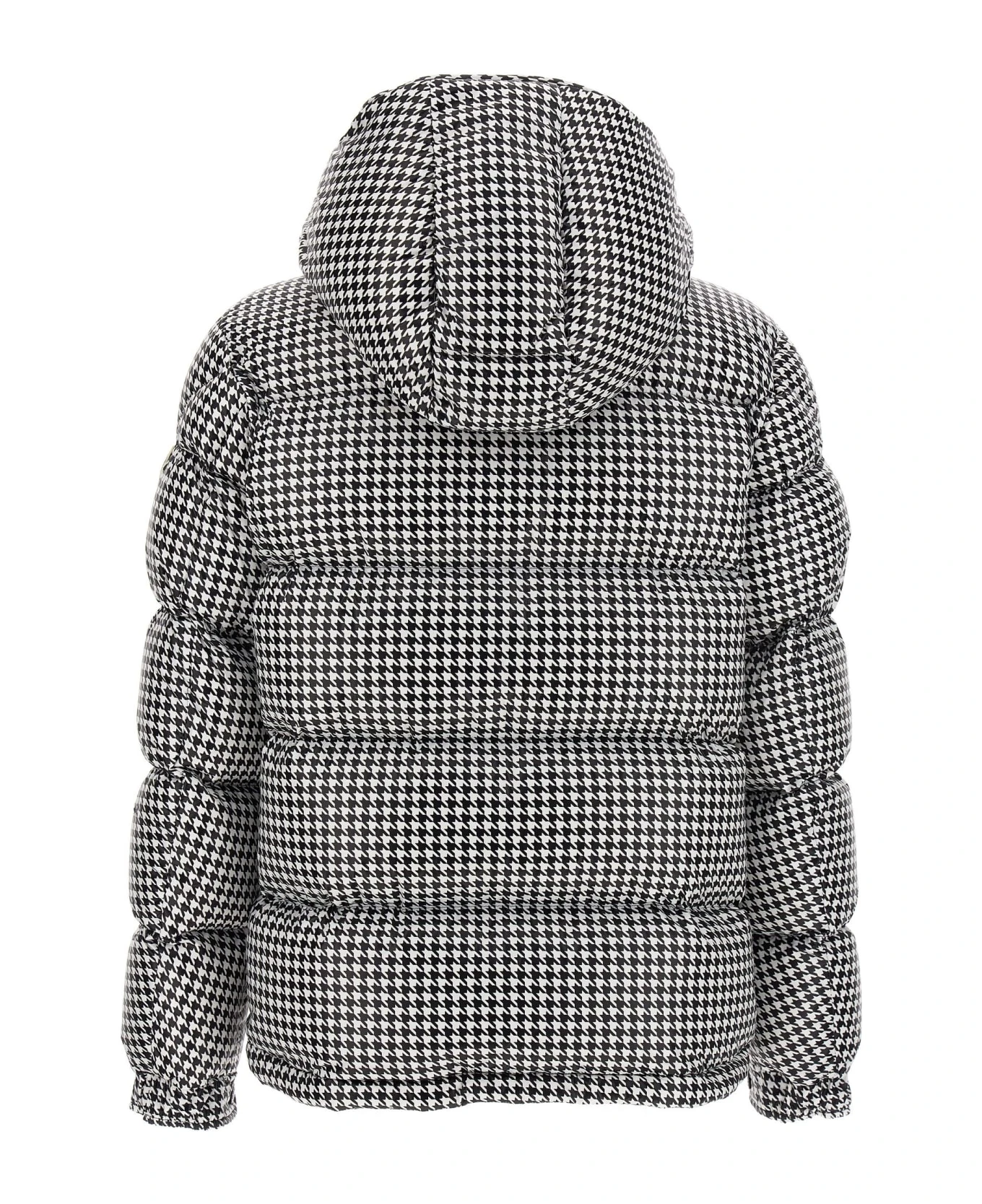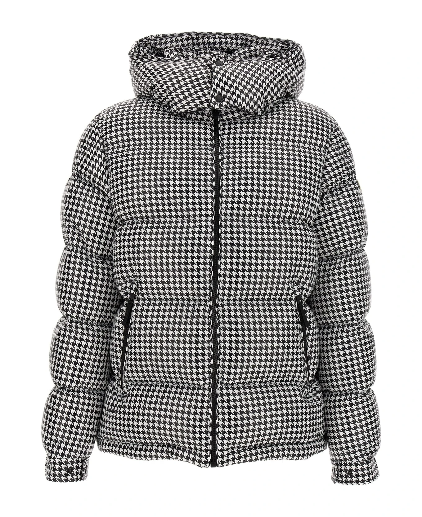 Moncler Genius x Fragment ‘Socotrine’ goose down jacket with hoarding print, featuring a removable hood, pockets, long sleeves with adjustable cuffs, djustable drawstring hem and a zip closure.