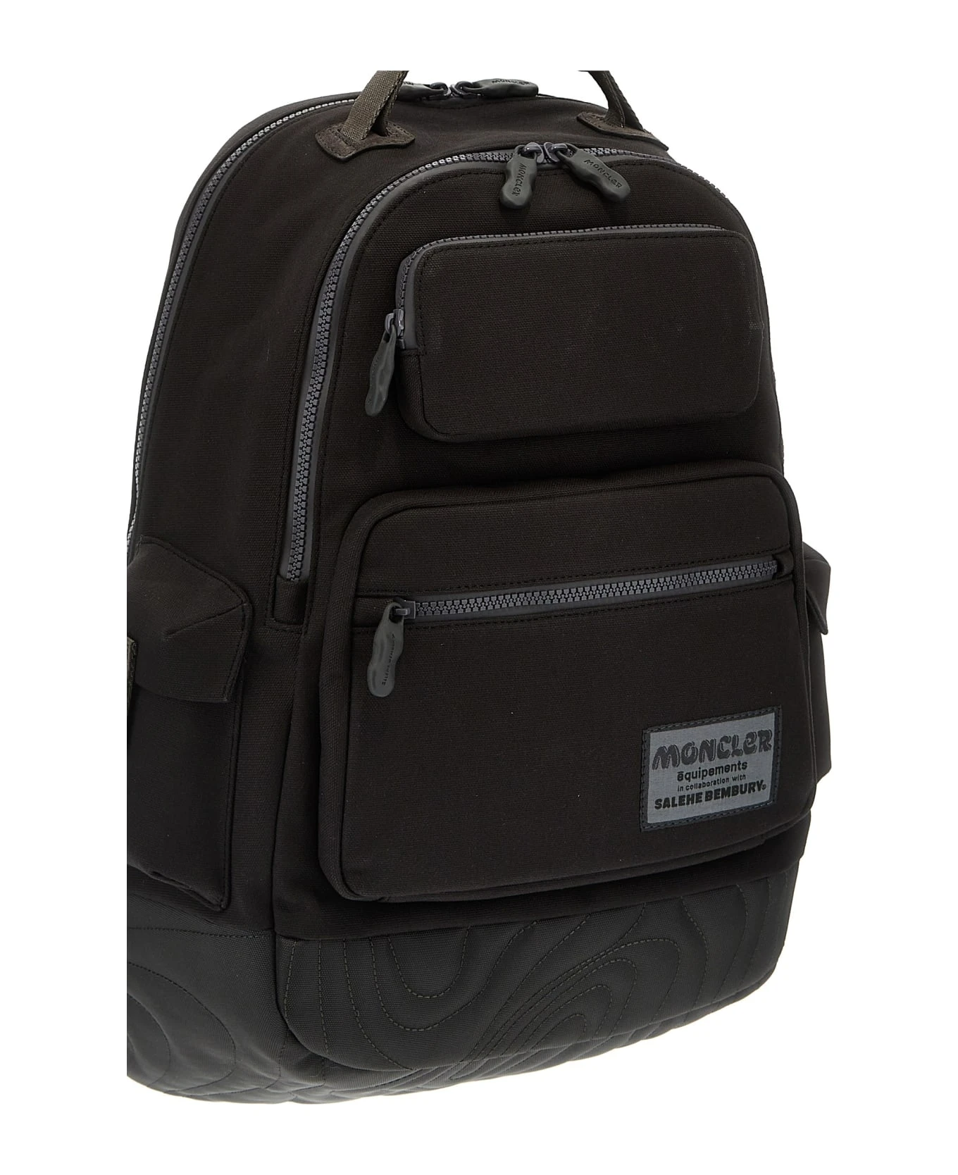 Canvas backpack with technical fabric lining, leather details, zip closure and adjustable shoulder straps