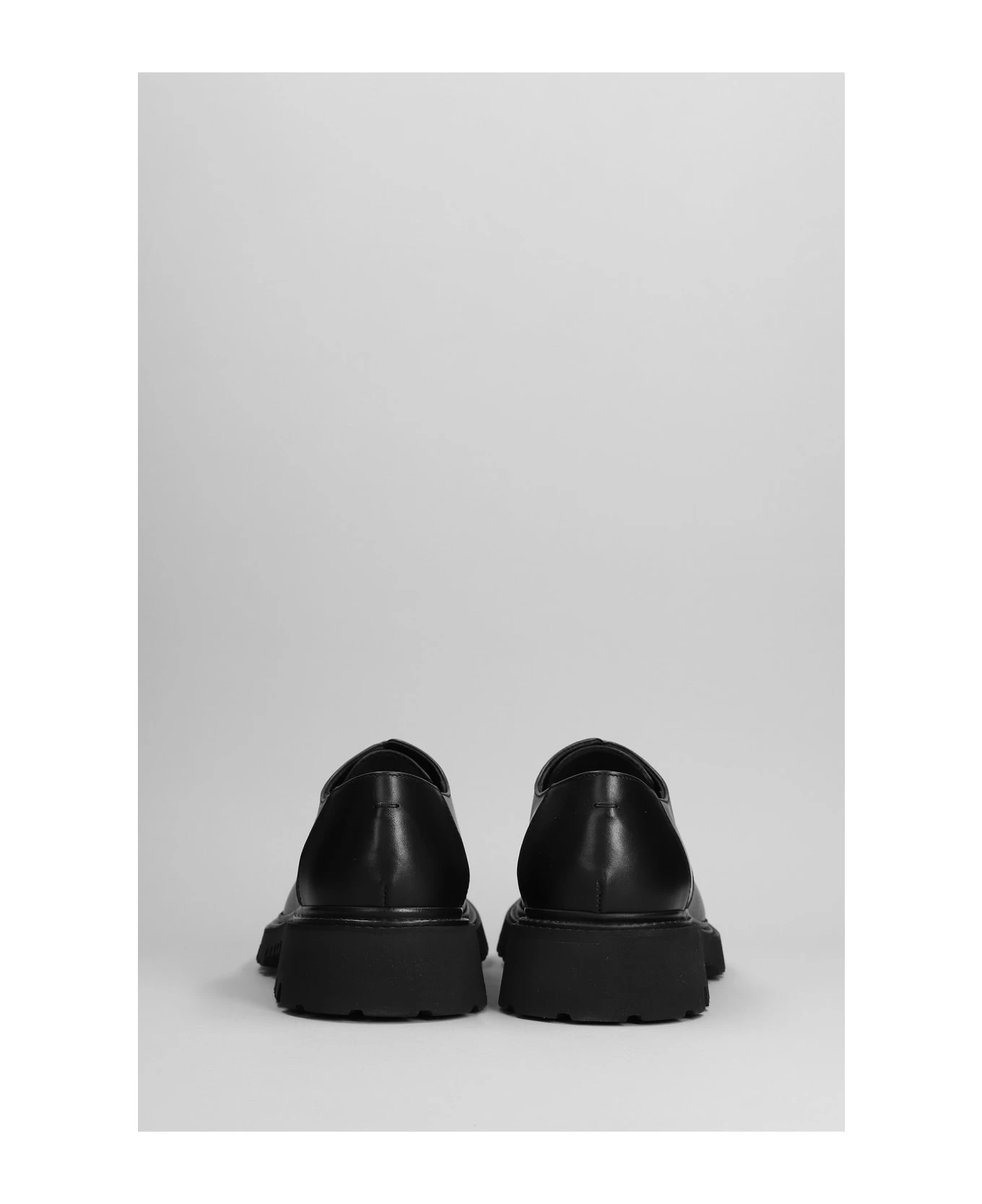 Lace up shoes in black leather, almond toe, laces, 50 mm heel, 100% leather, combact rubber sole, Made in Italy