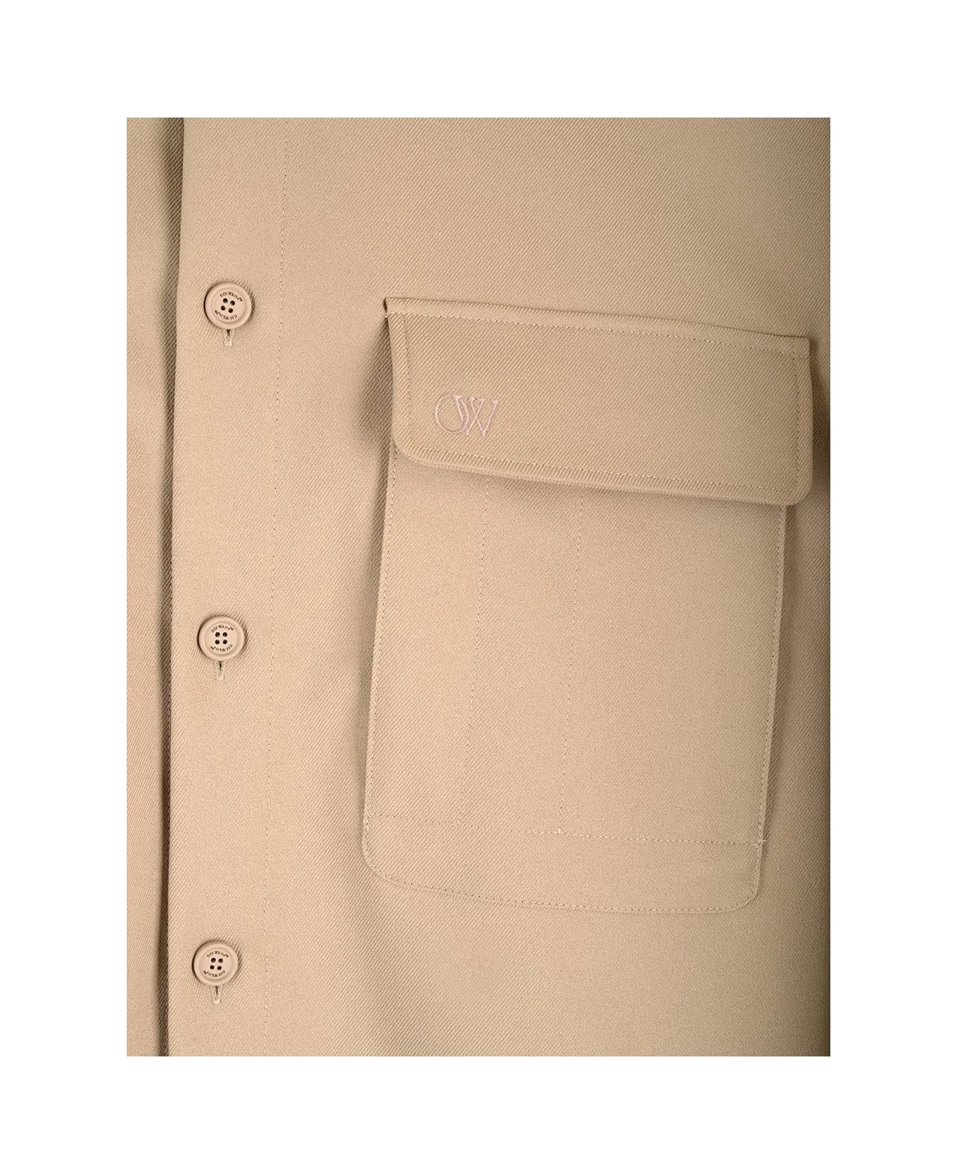 Camel overshirt from Off-White , long sleeves, pointed collar with buttons, two flap pockets on the chest and tone-on-tone embroidered logo, tone-on-tone button closure.