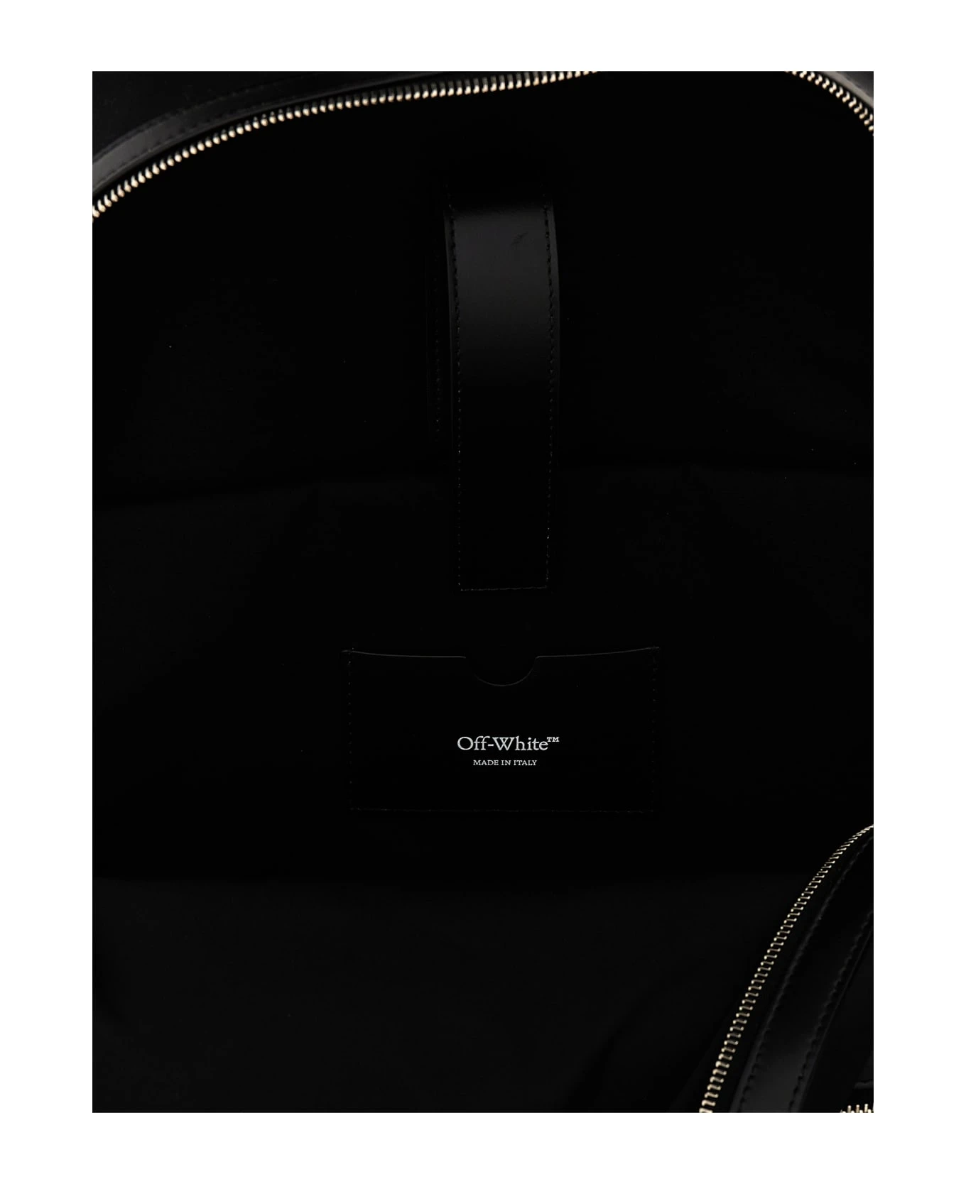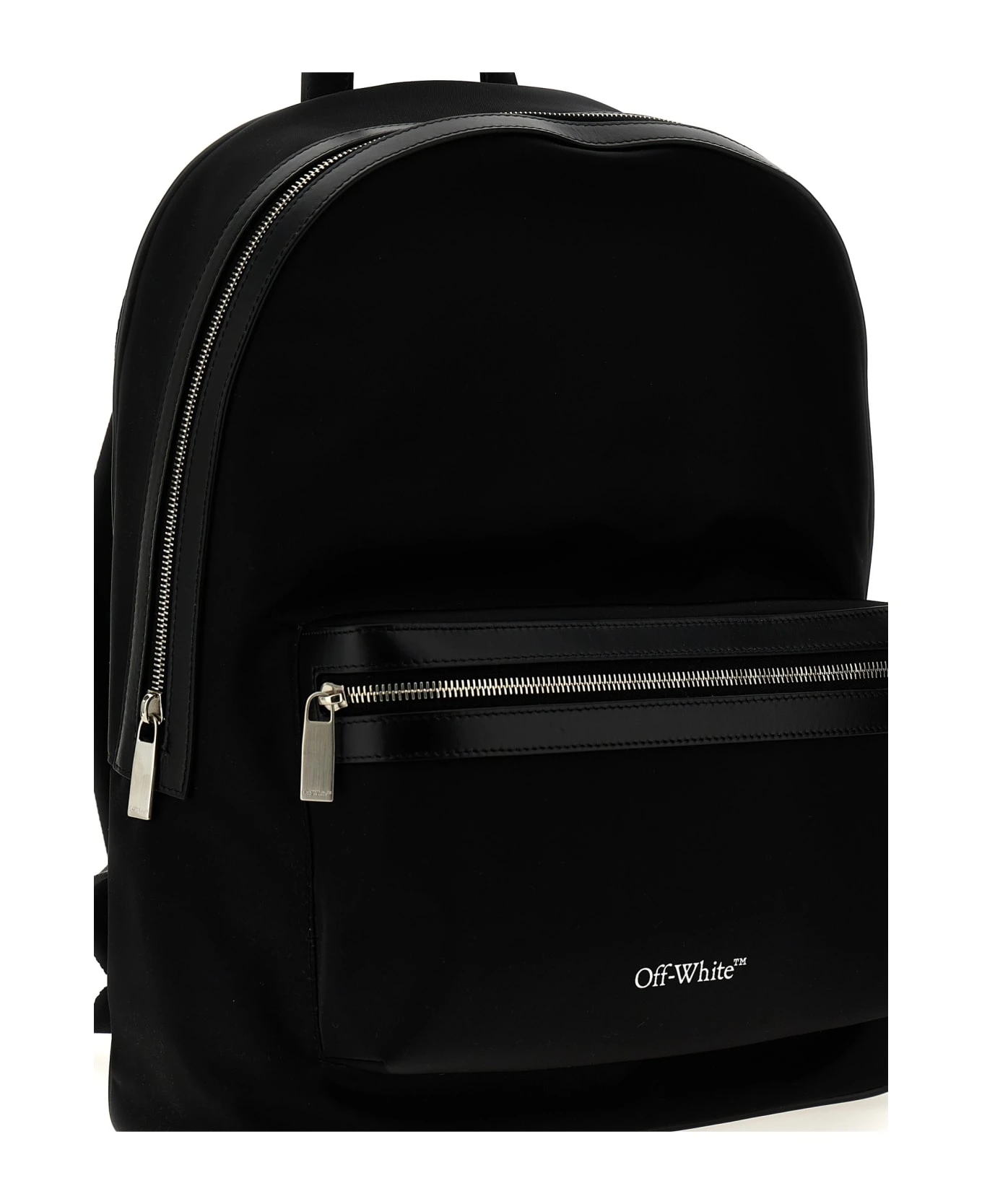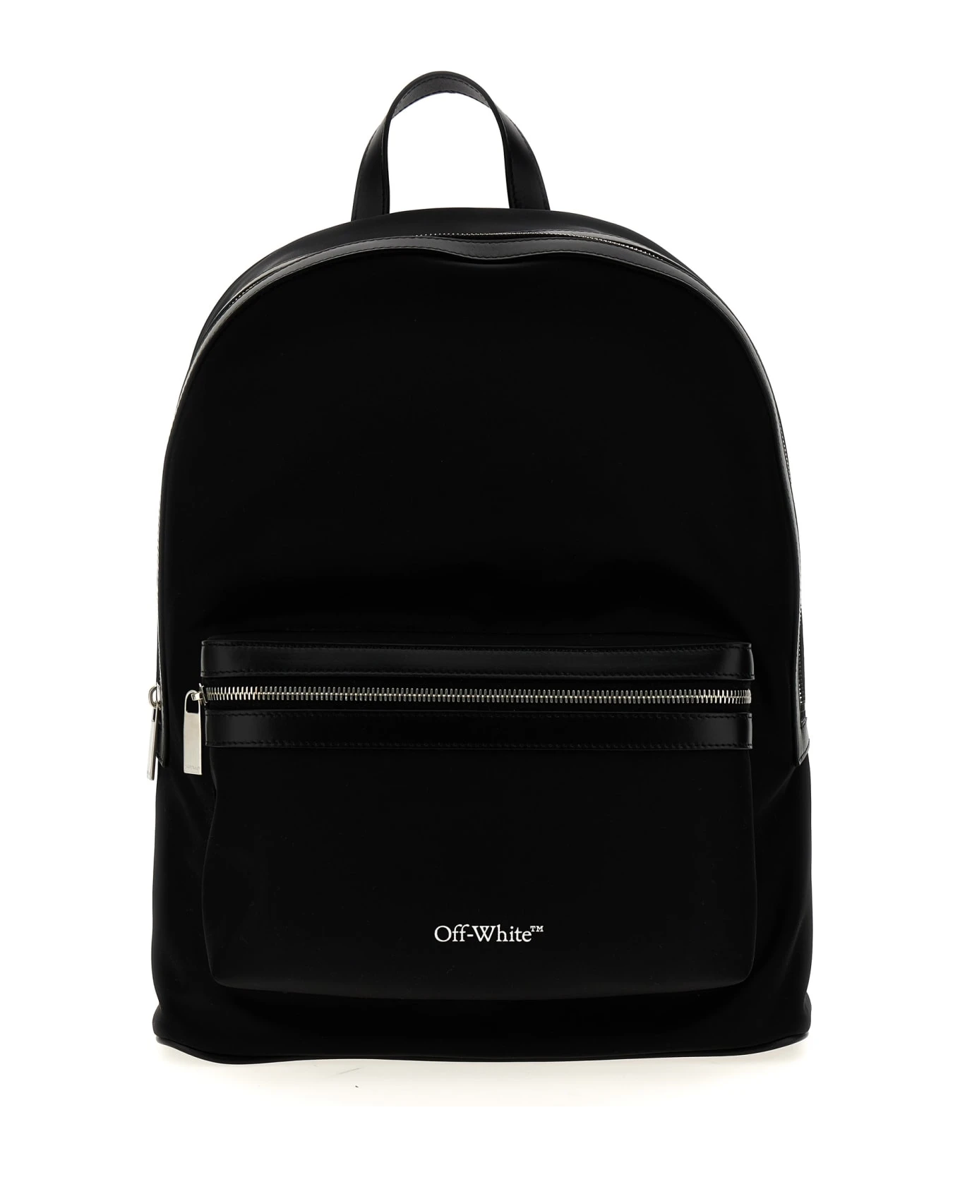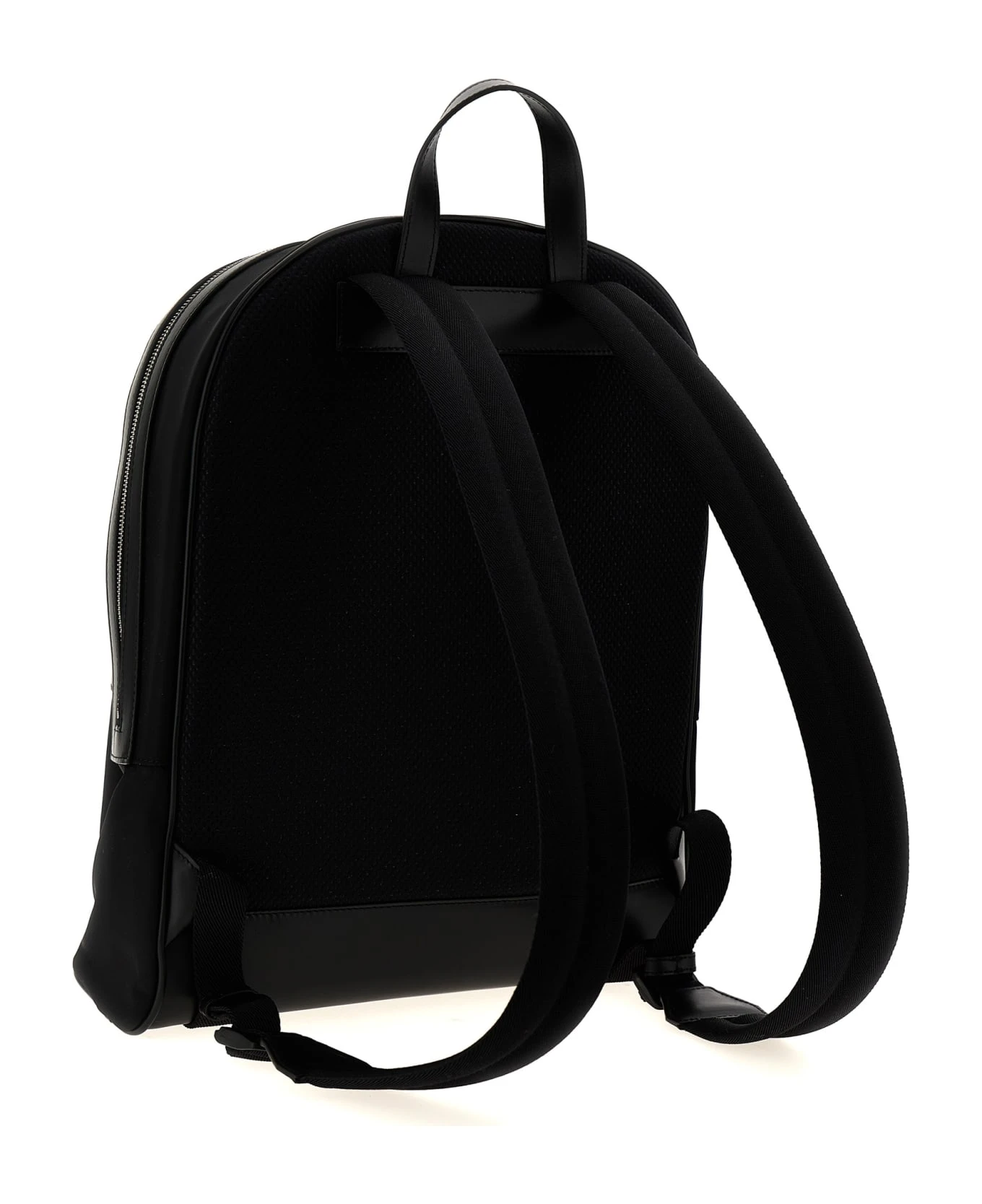‘Core Round’ nylon backpack with leather details, front logo print, outer zip pocket, zip closure, adjustable shoulder straps.