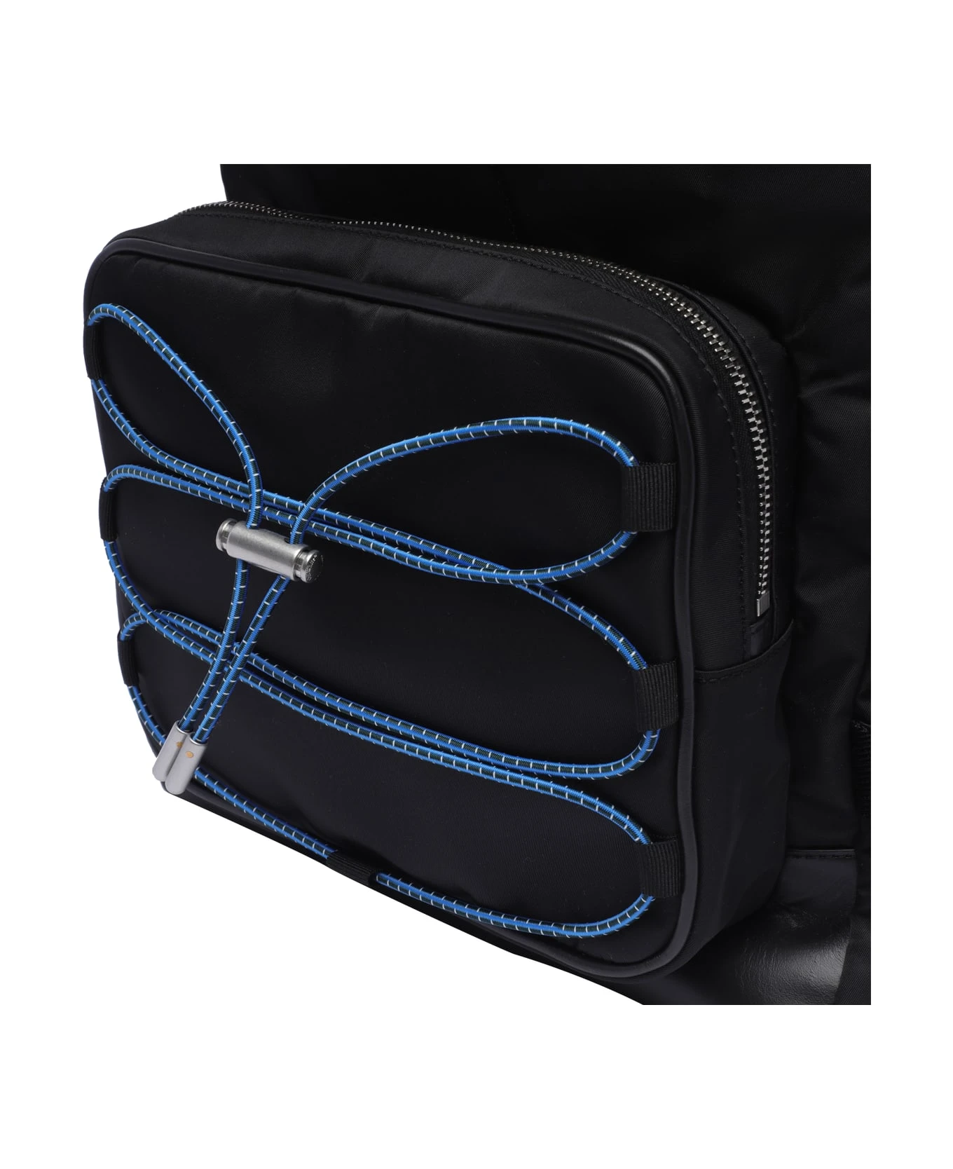 Off White black Courrie Flap backpack, coulisse and buckle closure, inner zip and slot pocket, 2 lateral open pockets, adaptable straps, frontal mini logo