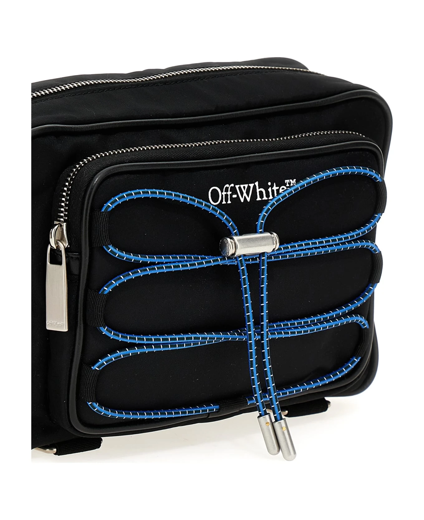 Courrier’ shoulder strap in technical fabric with leather piping, front trekking lace detail, and zip closure. Equipped with adjustable and removable shoulder strap.