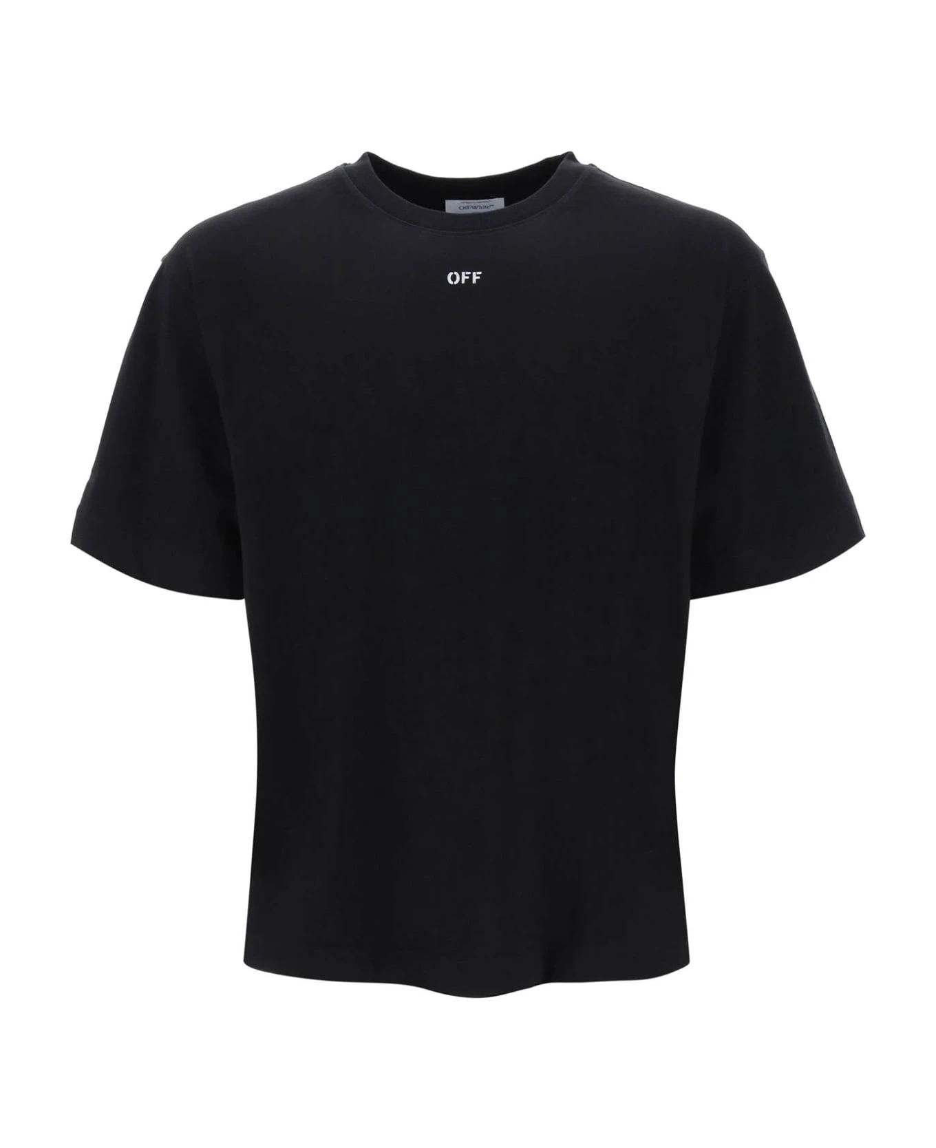 Off White T-shirt crafted in pure cotton jersey with contrasting OFF print on the chest. It features ribbed crew neck. Oversized fit enhanced by dropped shoulders. The model is 187 cm tall and wears size L.