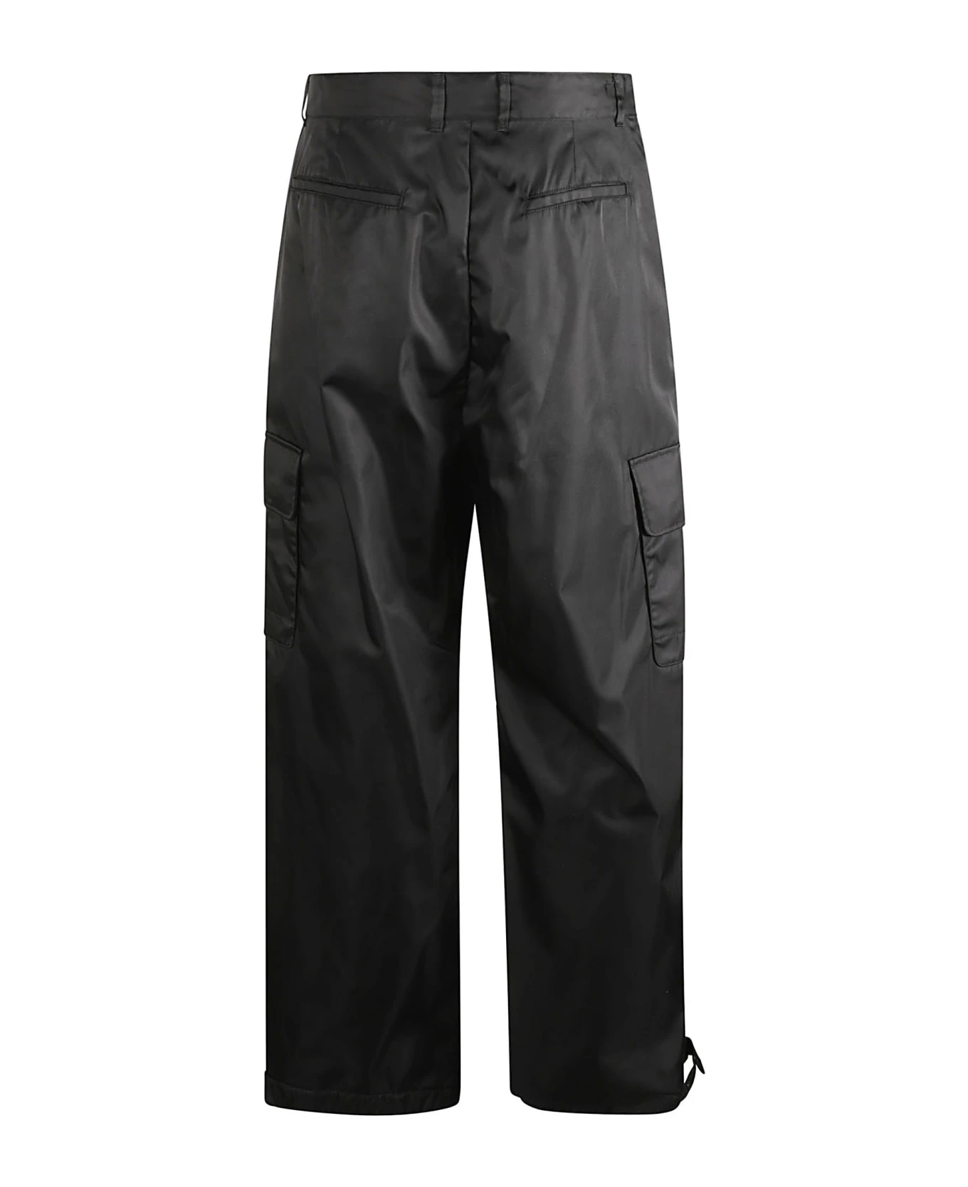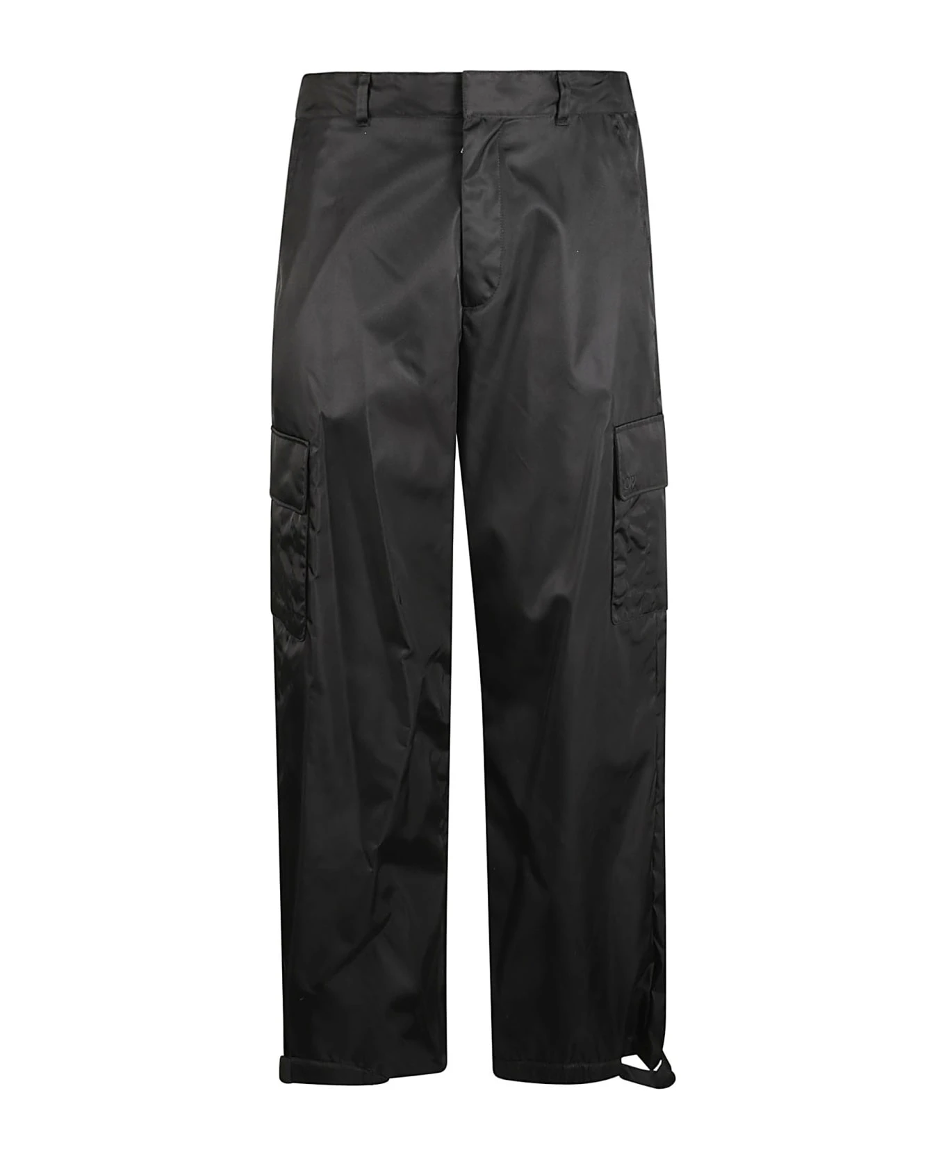 mid-rise cargo trousers from OFF-WHITE featuring black, mid-rise, belt loops, concealed front fastening, two side slit pockets, two side cargo pockets, embroidered logo to the side, straight leg, elasticated ankles and ankle strap.