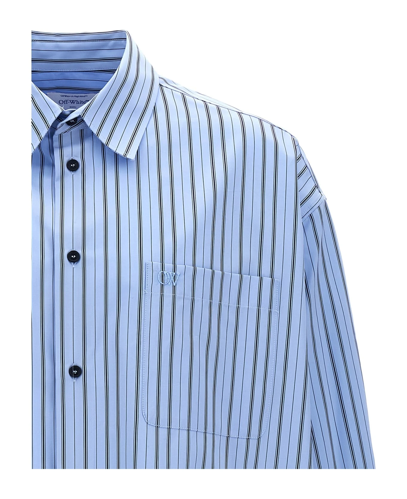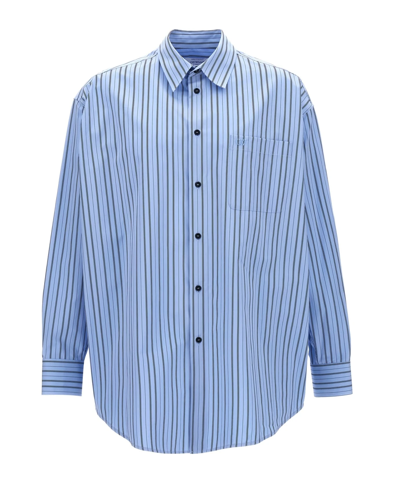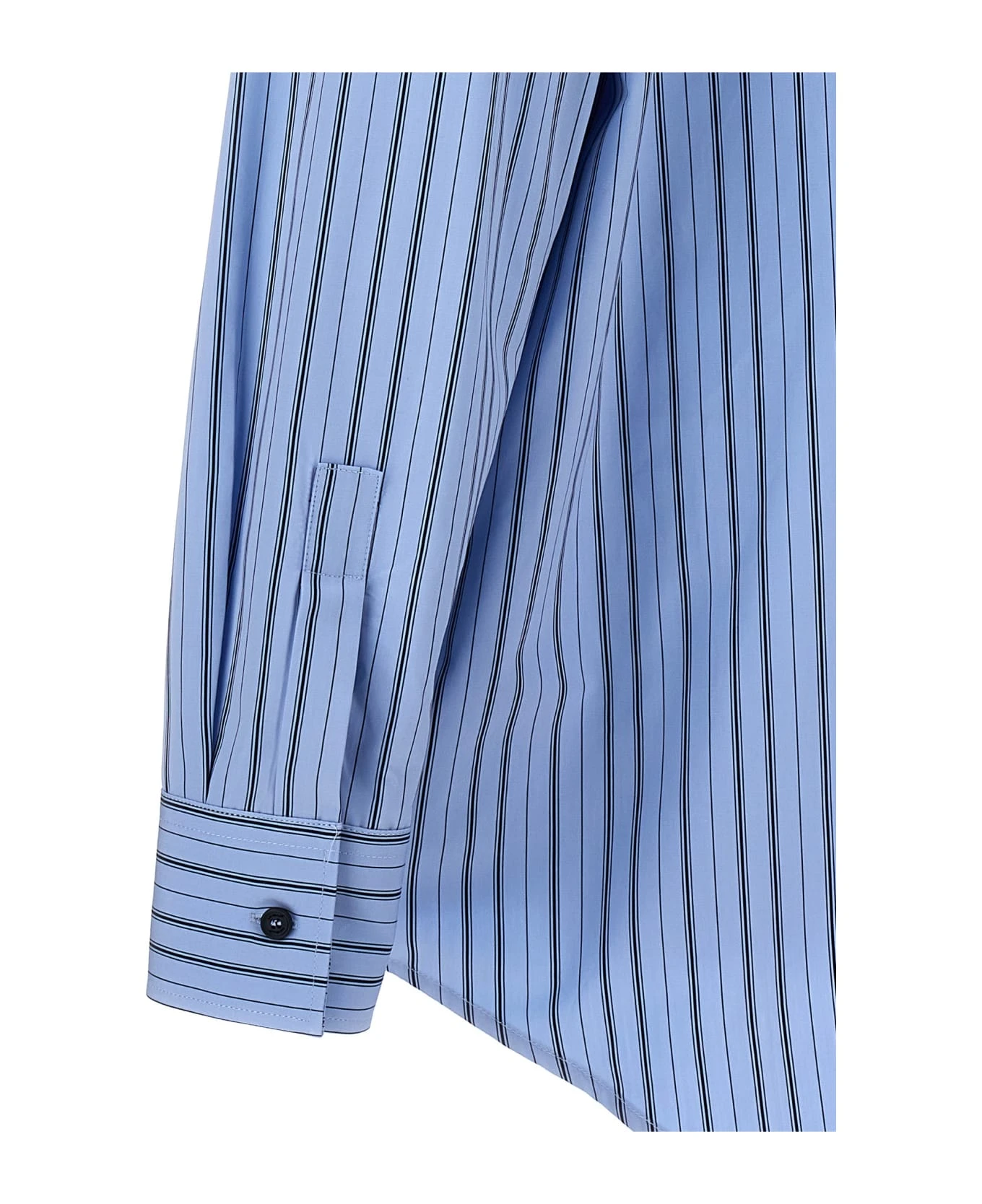 Cotton poplin shirt with striped pattern, button closure, chest pocket with embroidered logo.