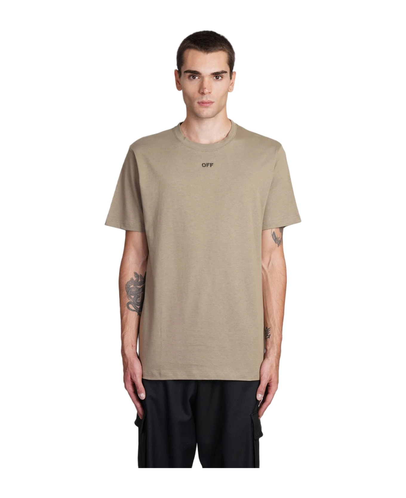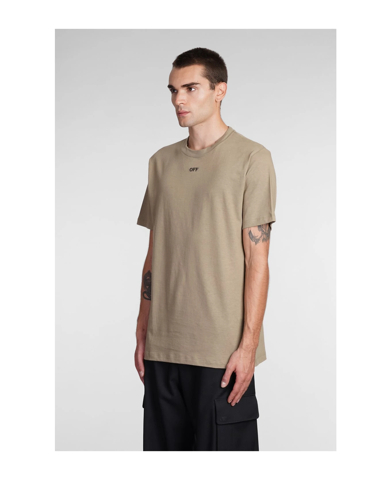 T-Shirt in beige cotton, round neck, short sleeves, logo back, straight hem, 100% cotton, Made in Italy, Model is 1. 83 and wears size M