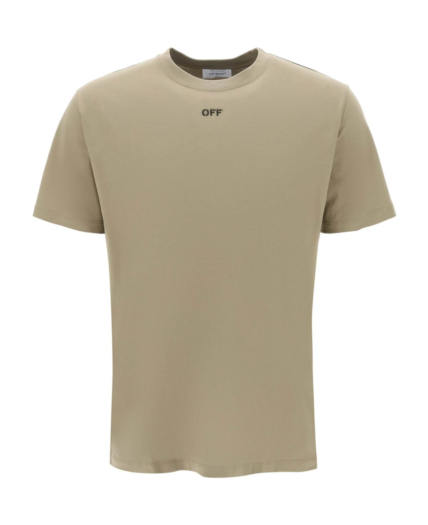 Off White T-shirt crafted in pure cotton jersey with maxi Arrow embroidery at back and OFF embroidery on the chest. It features ribbed crew neck. Relaxed fit. The model is 187 cm tall and wears size L.