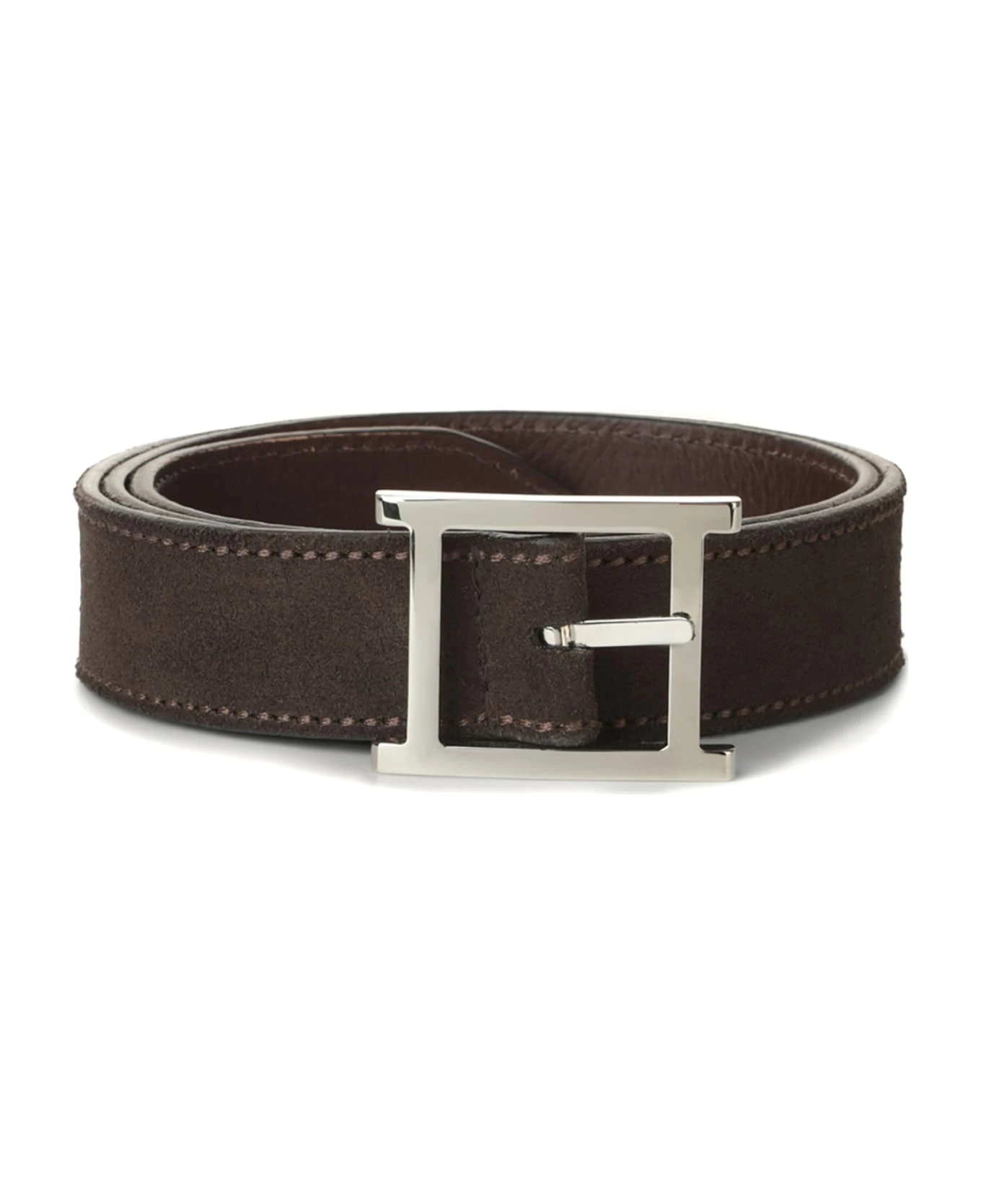 Amalfi brown suede belt, palladium finish buckle, h. 3,5 cm