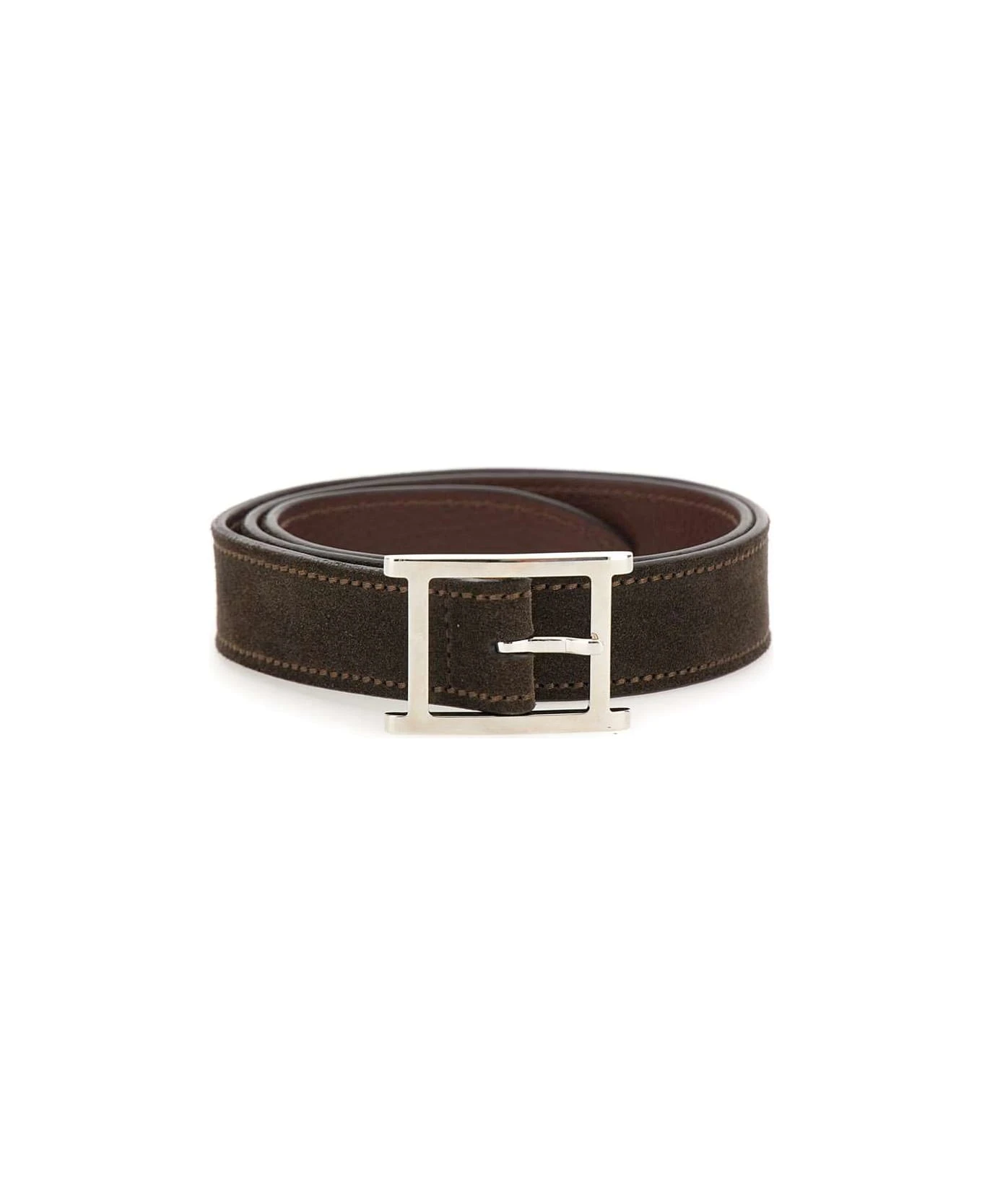 Orciani men’s belt “Amalfi” dark brown suede, visible stitching, palladium finish buckle. Length 100cm, width 3. 5cm. Made in Italy.