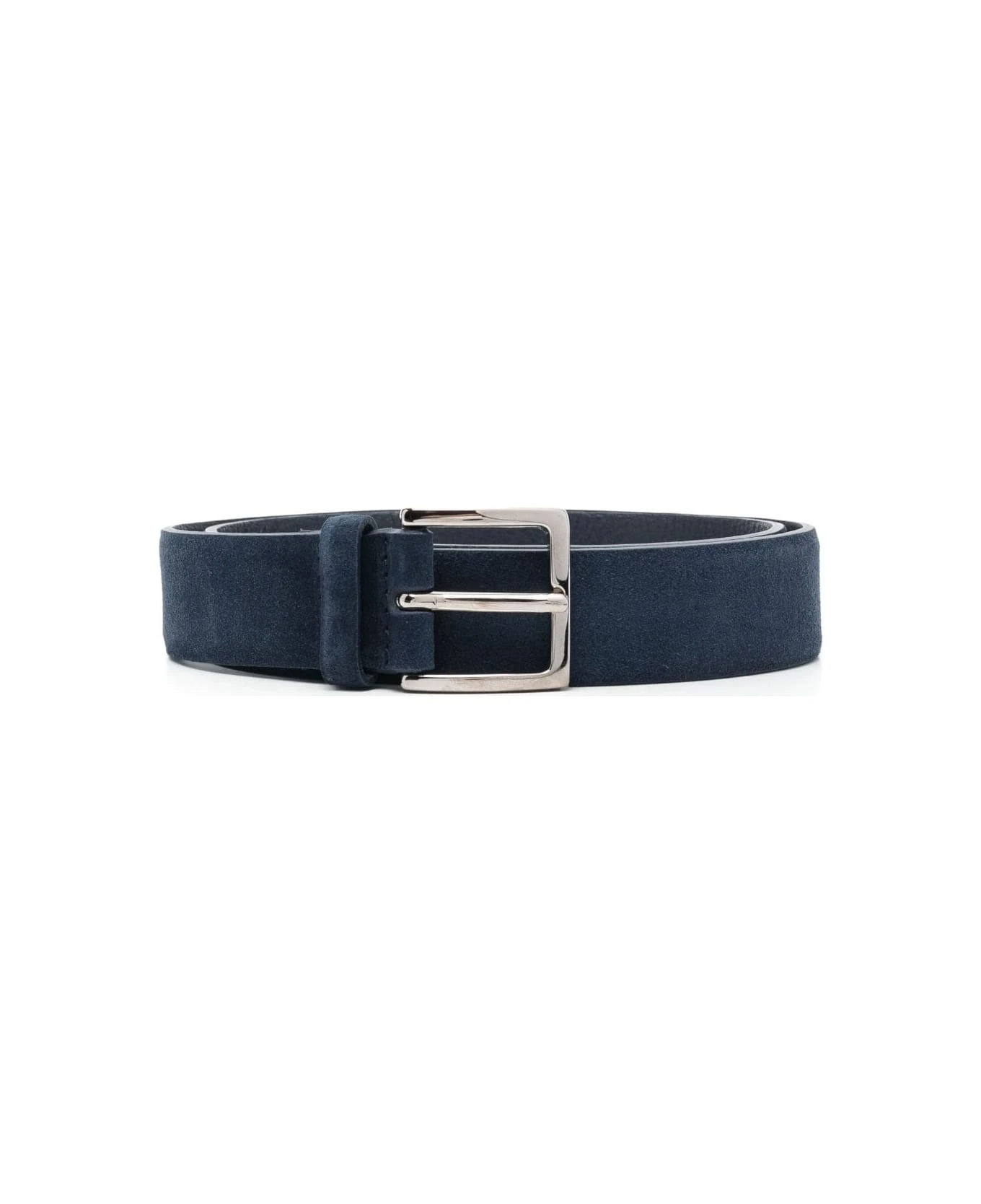 Amalfi classic belt for men by Orciani made of night blue suede leather with single loop and square metal buckle with a shiny silver finish. Height: 3. 5 cm.