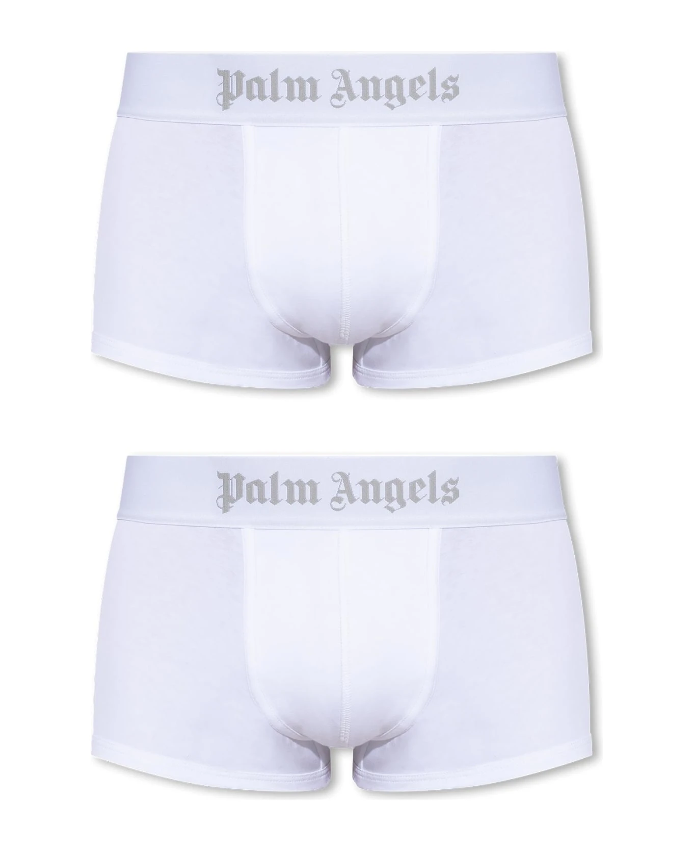 2-pack of white boxers from Palm Angels. Made of cotton, this pair features an elastic waistband with a grey logo.