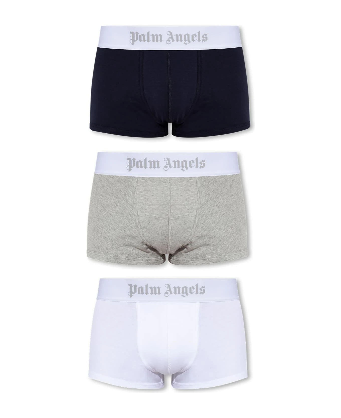 3-pack of boxers in navy, white and grey from Palm Angels. Crafted from cotton, each pair features a white elastic waistband with a grey logo.