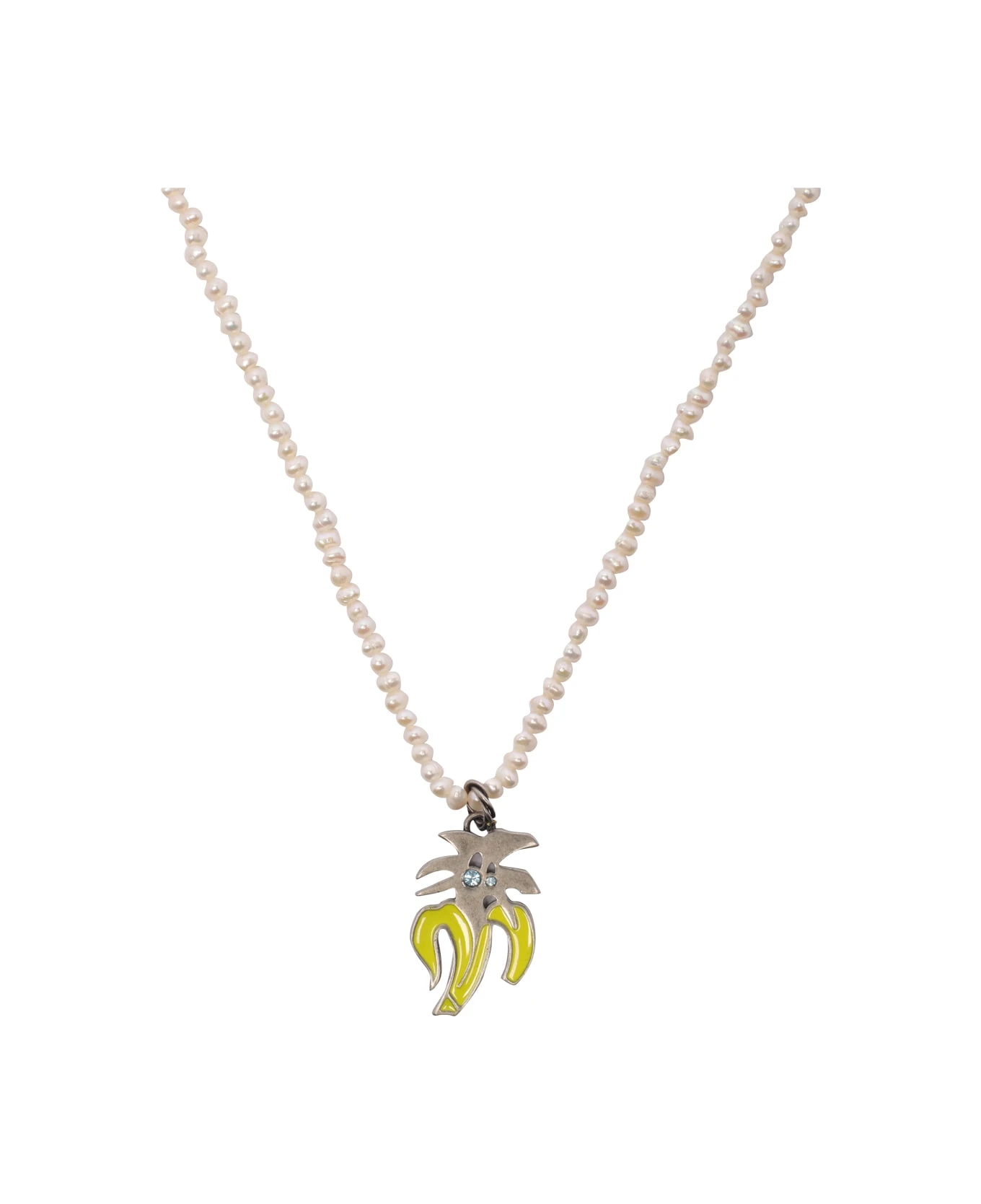 Palm Angels silver Jimmy necklace, hook closure, Banana charm