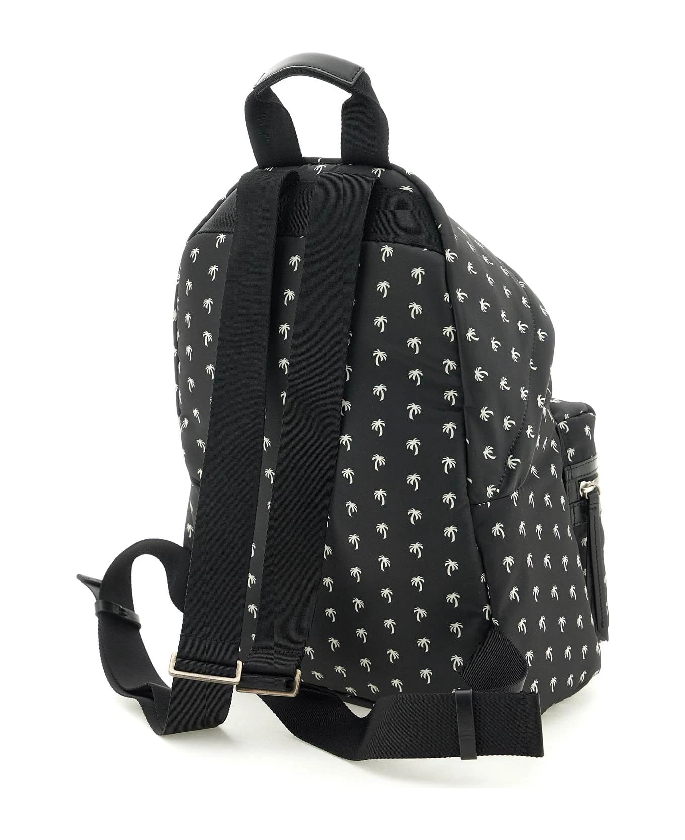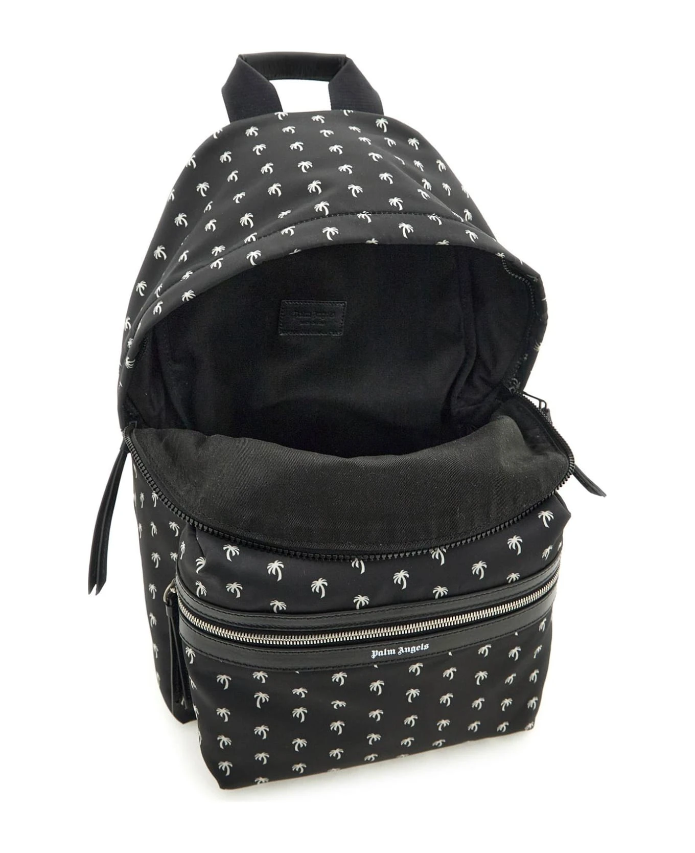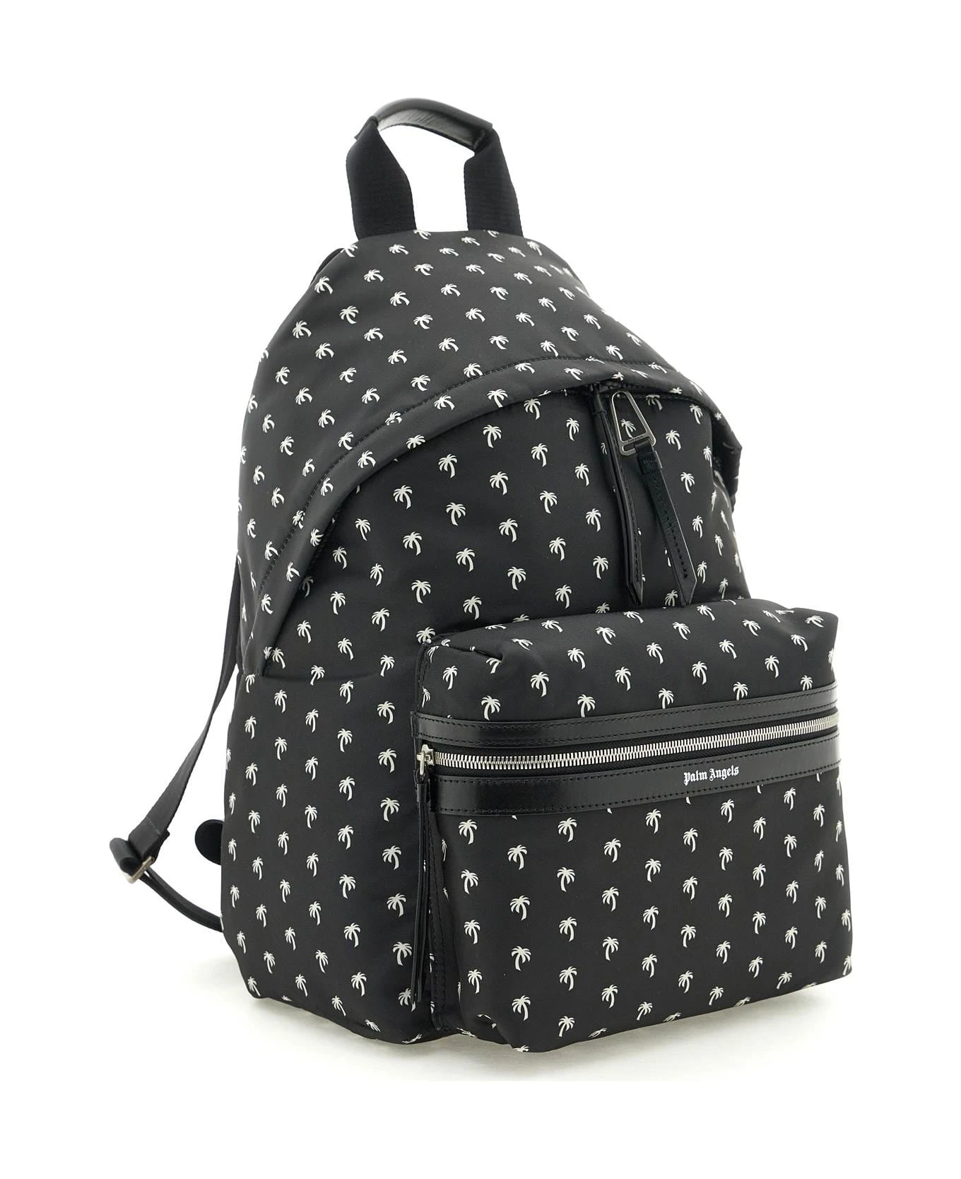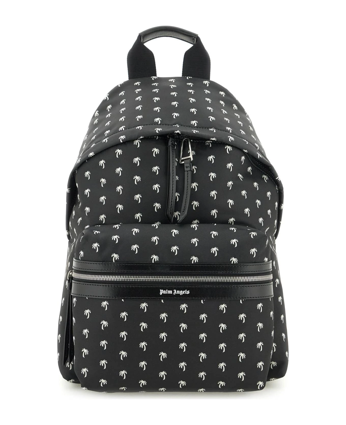 Palm Angels backpack crafted in nylon with contrasting all-over Mini Palms print. Two-way zippered closure, lined interior, front pocket with lettering logo and adjustable shoulder straps.