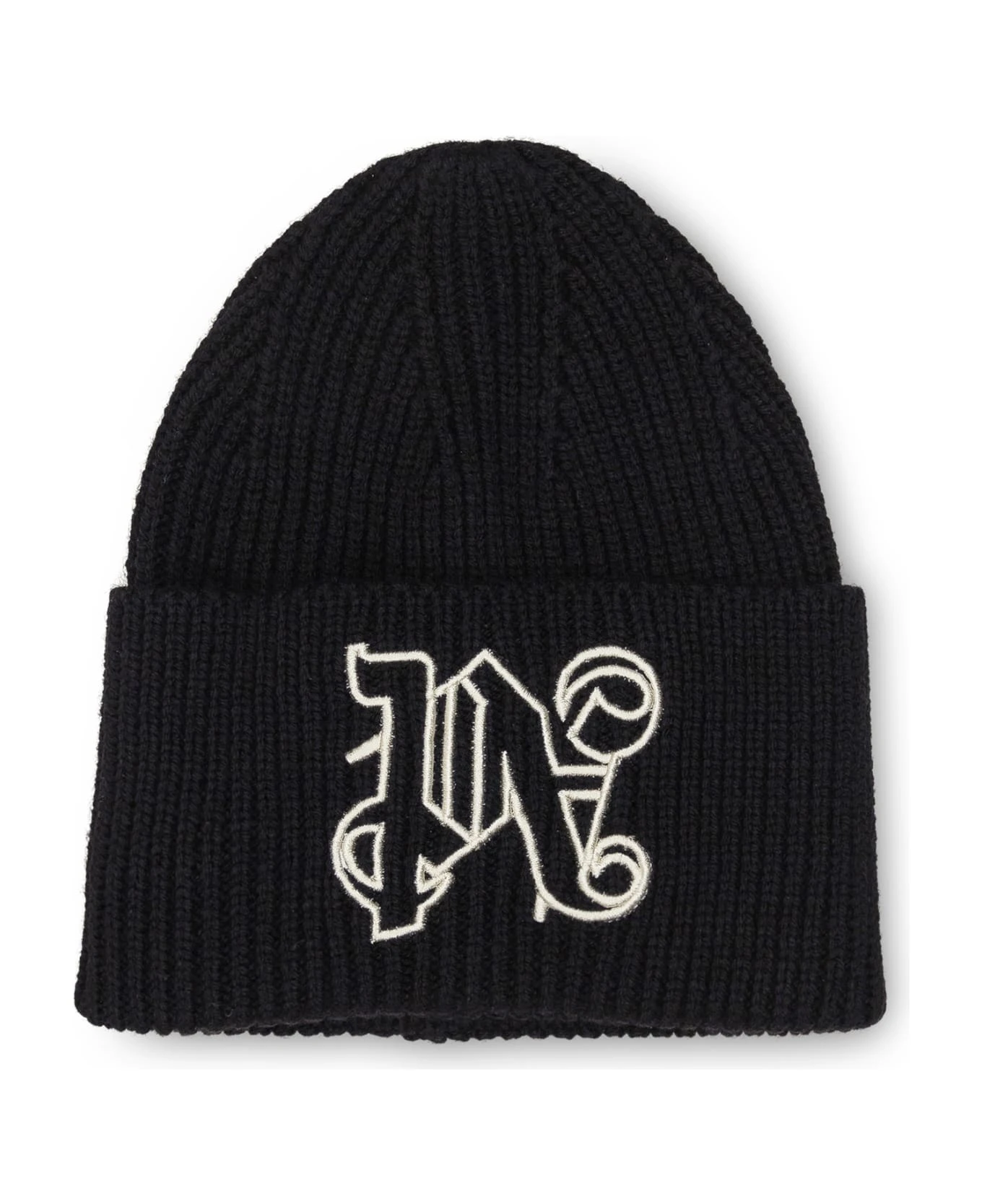 Black ribbed beanie. PA Monogram logo embroidered on the front.