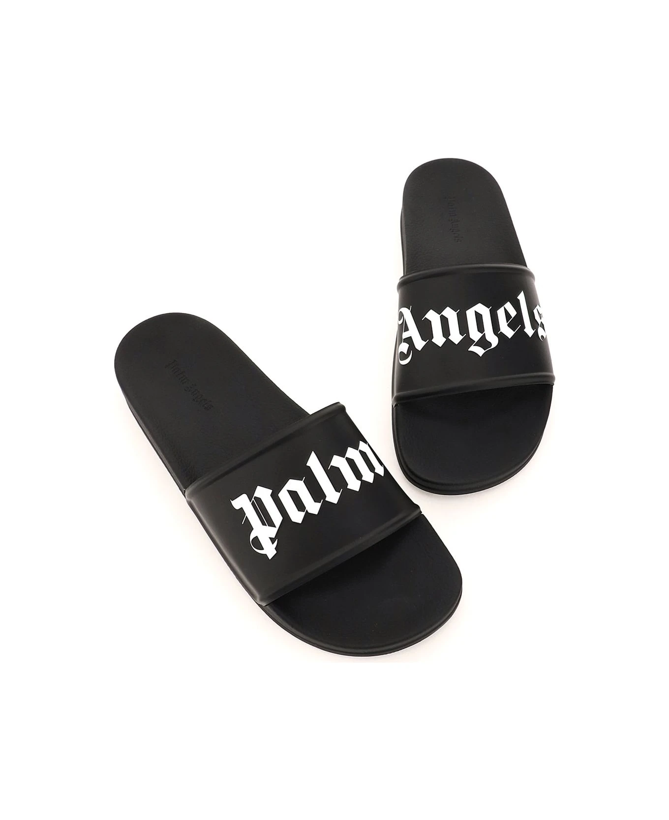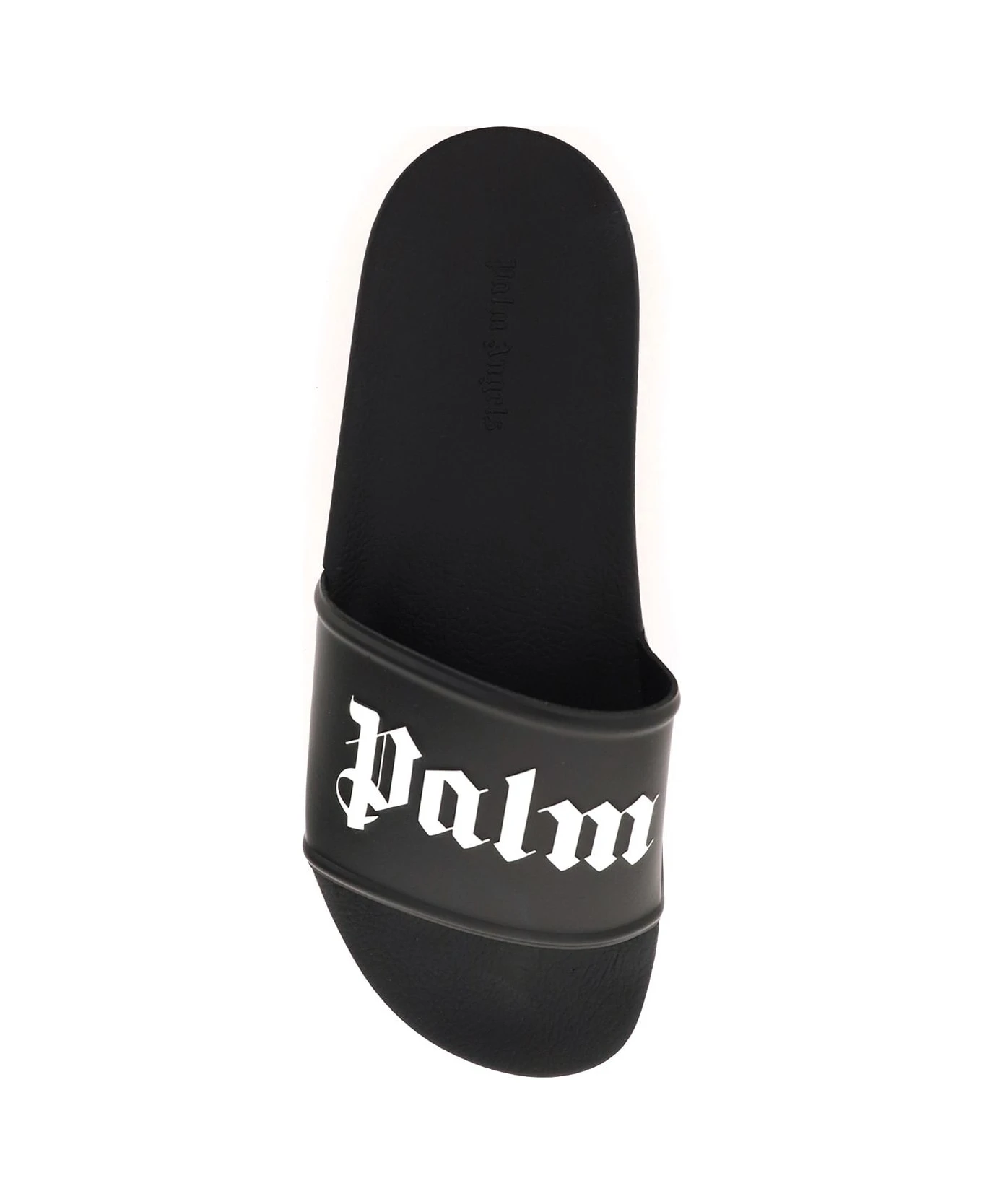Palm Angels rubber slides with contrasting embossed logo print on the upper. Moulded footbed in embossed rubber, rubber sole.