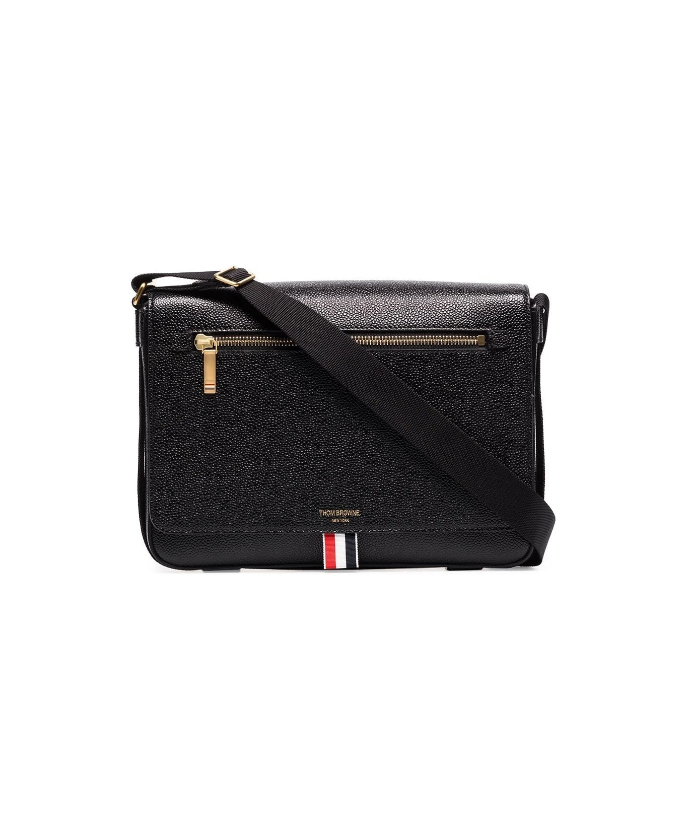 Reporter Bag With Webbing Strap In Pebble Grain Leather from Thom Browne