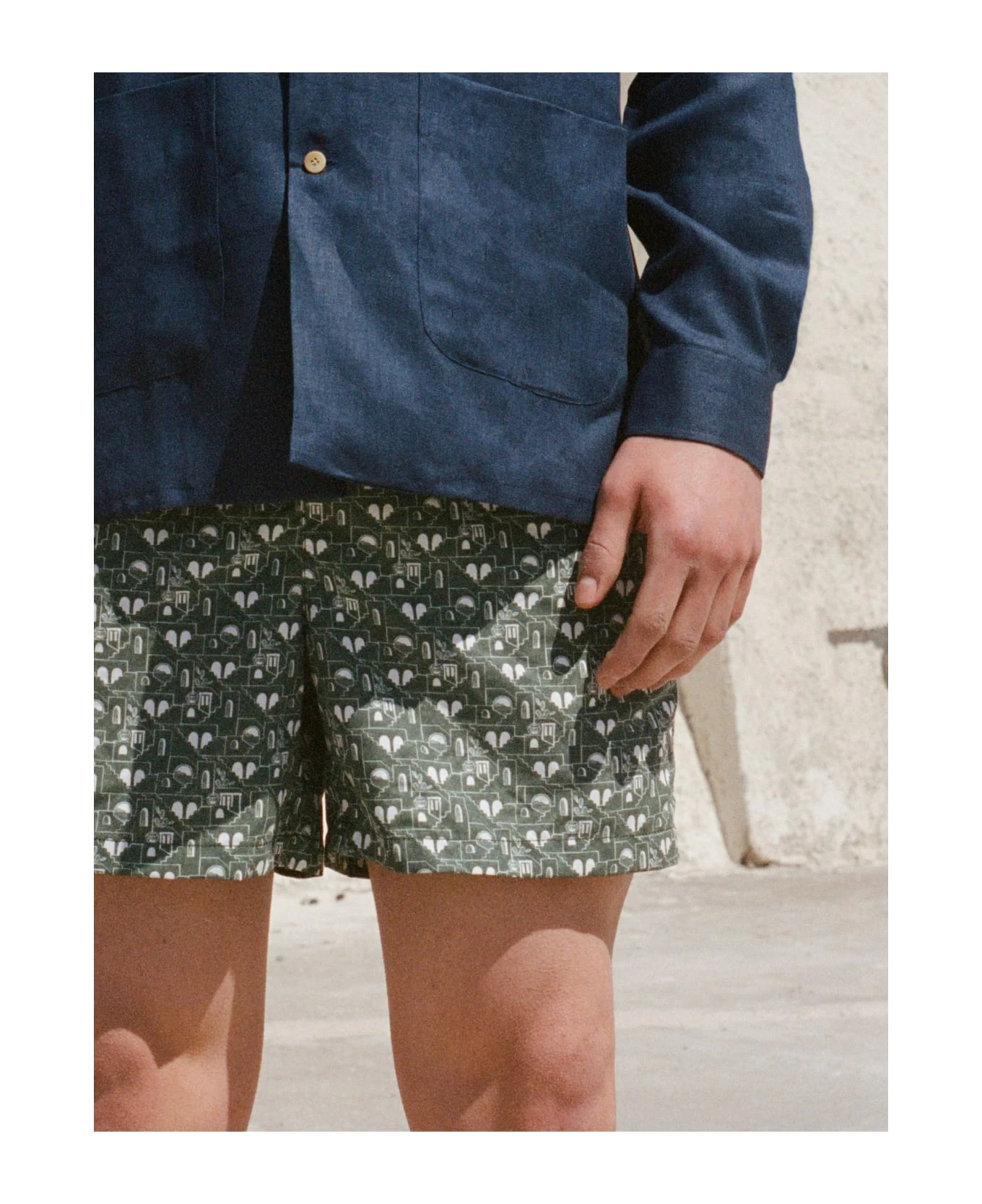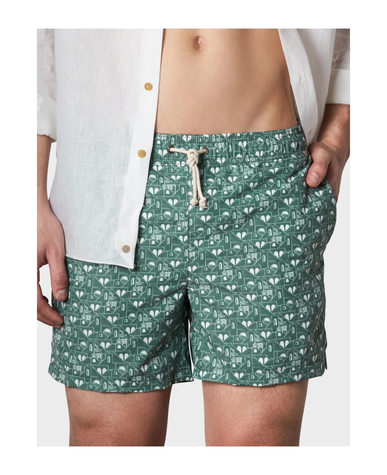 The classic swimsuit was redesigned for a more elegant, tailored look and a comfortable fit. Made from soft, brushed fabric that is quick-drying and has a distinctive cotton-feel. Tying-cord made from braided nautical rope in unbleached cotton. Pattern drawn by hand. Made in Italy.