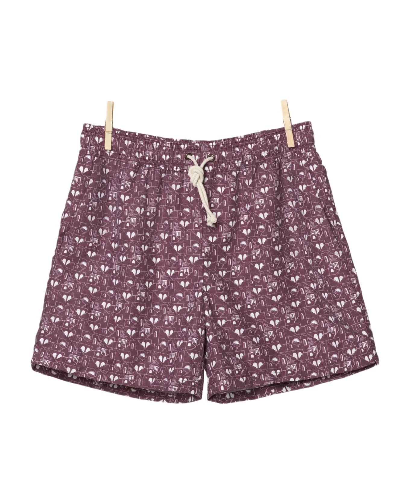 The classic swimsuit was redesigned for a more elegant, tailored look and a comfortable fit. Made from soft, brushed fabric that is quick-drying and has a distinctive cotton-feel. Tying-cord made from braided nautical rope in unbleached cotton. Pattern drawn by hand. Made in Italy.