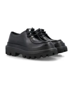 Dolce & Gabbana Black Chelsea Ankle Boots With Chunky Platform With Logo Plaque In Leather Blend Man