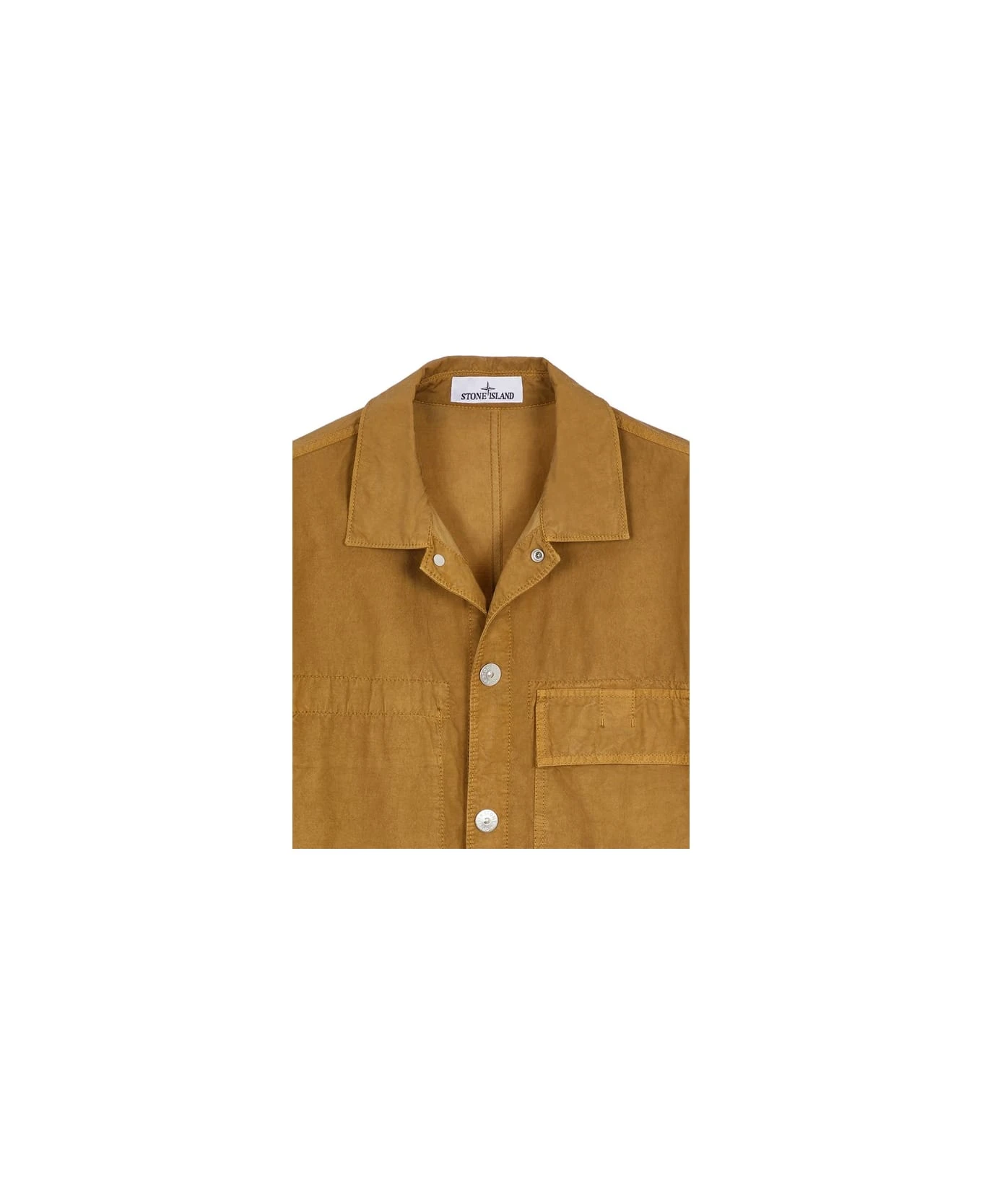 Brown overshirt with frontal pocket and botton closure from Stone Island. – fit the true size