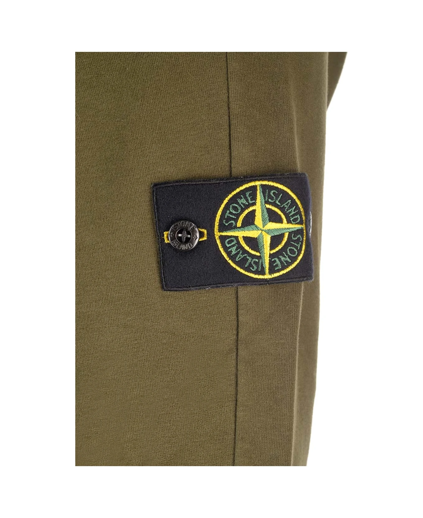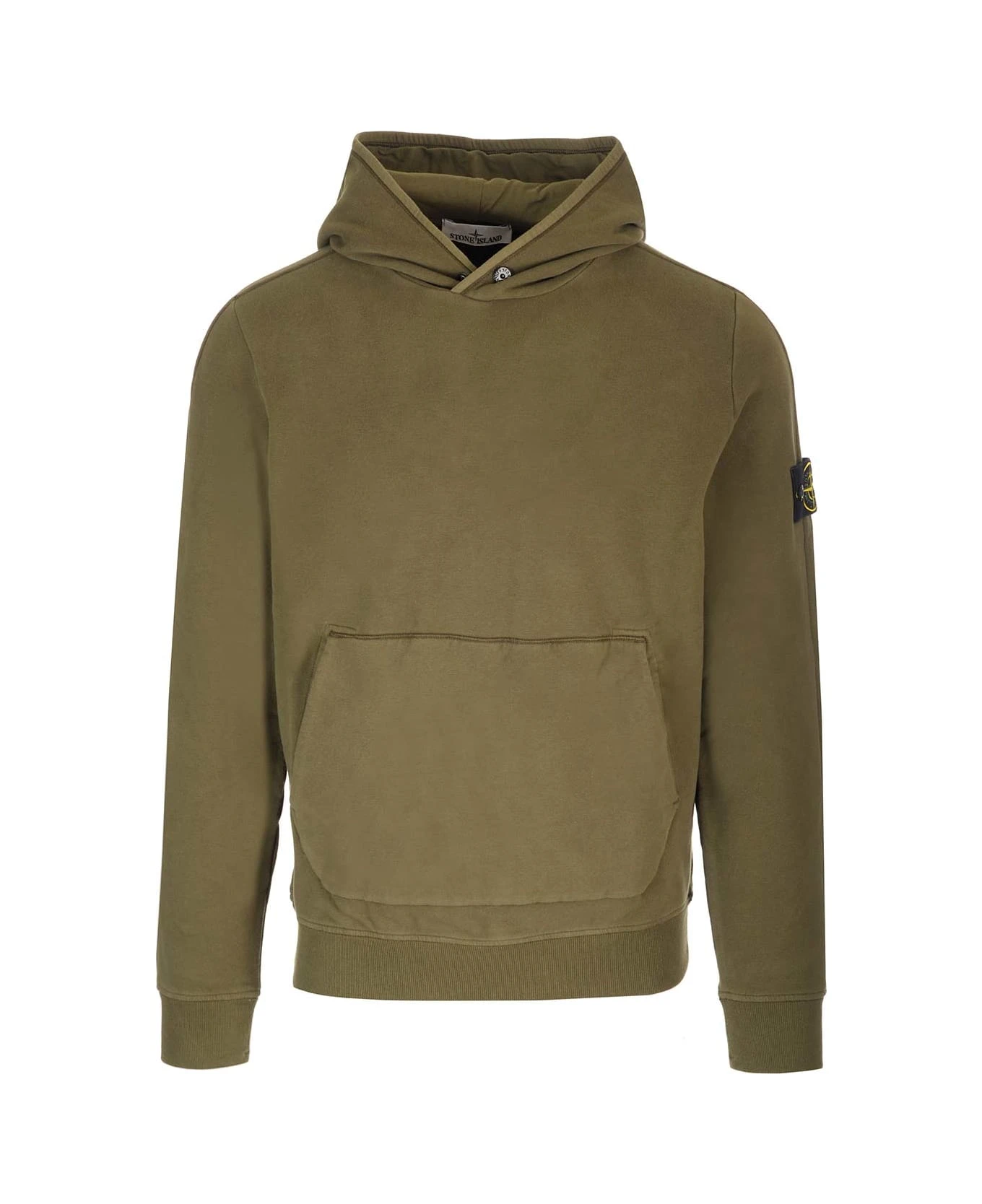 Green Cotton Sweatshirt From Stone Island With Hood With Snap Button Closure And Fabric Logo Patch