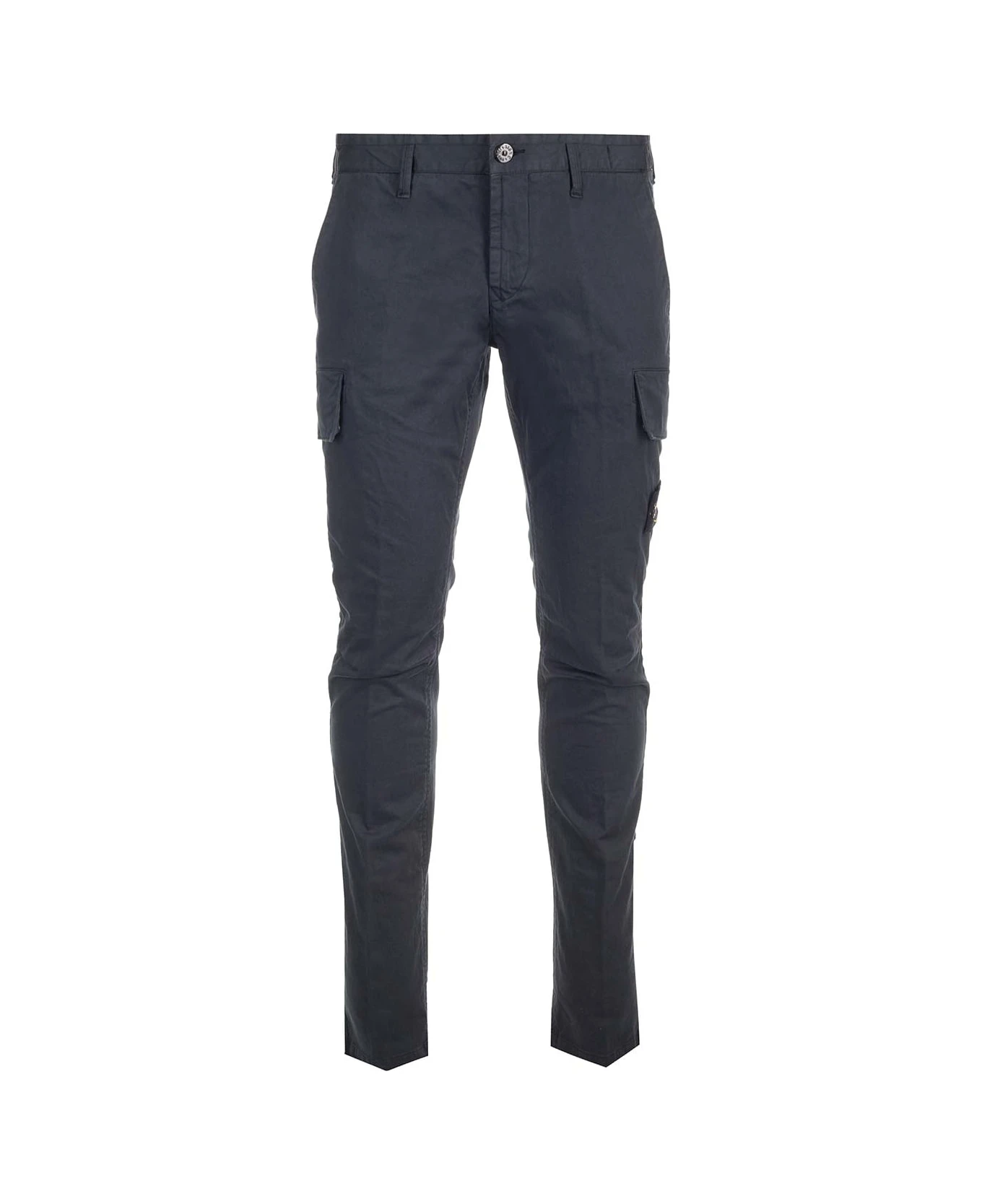 Blue slim fit cargo trousers from Stone Island, with fitted leg, large pockets, low waist, belt loops, covered zip and button closure.