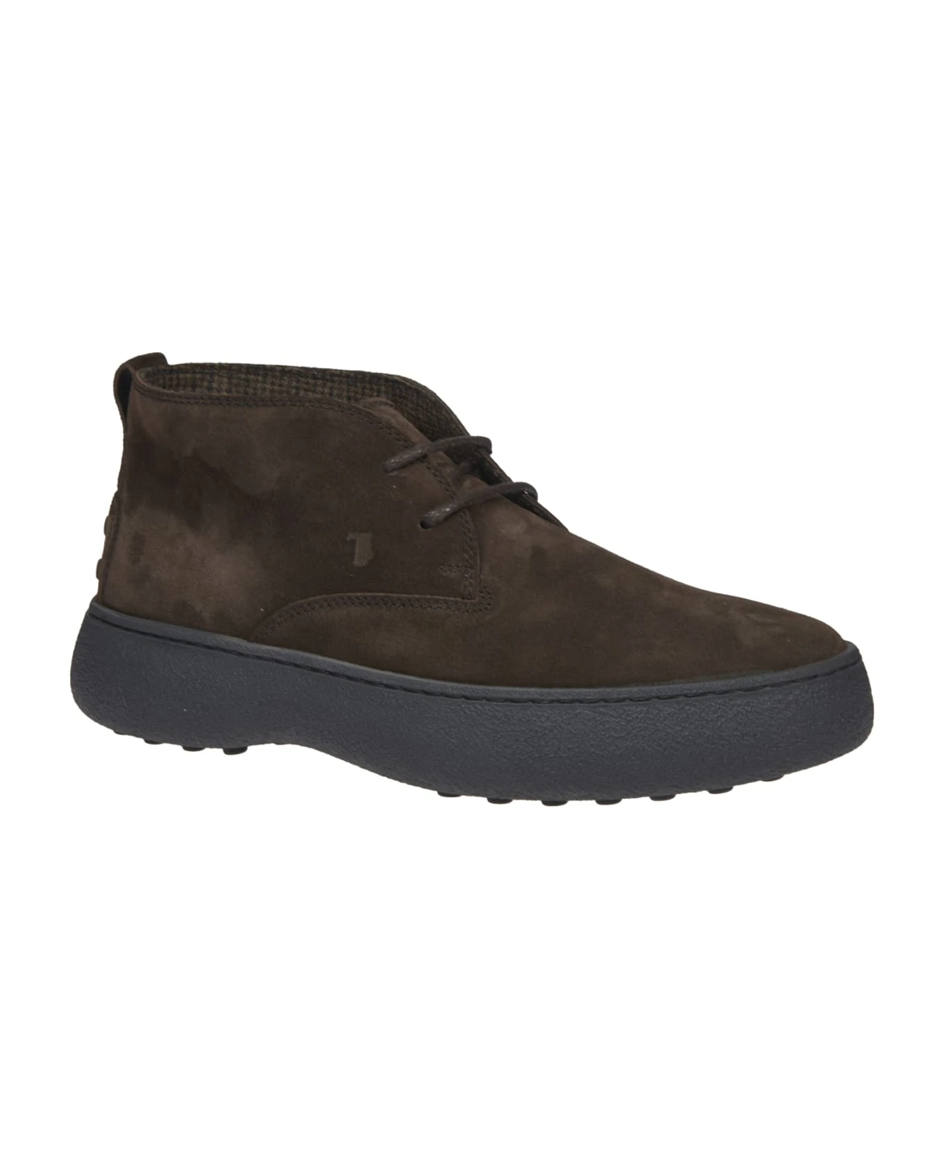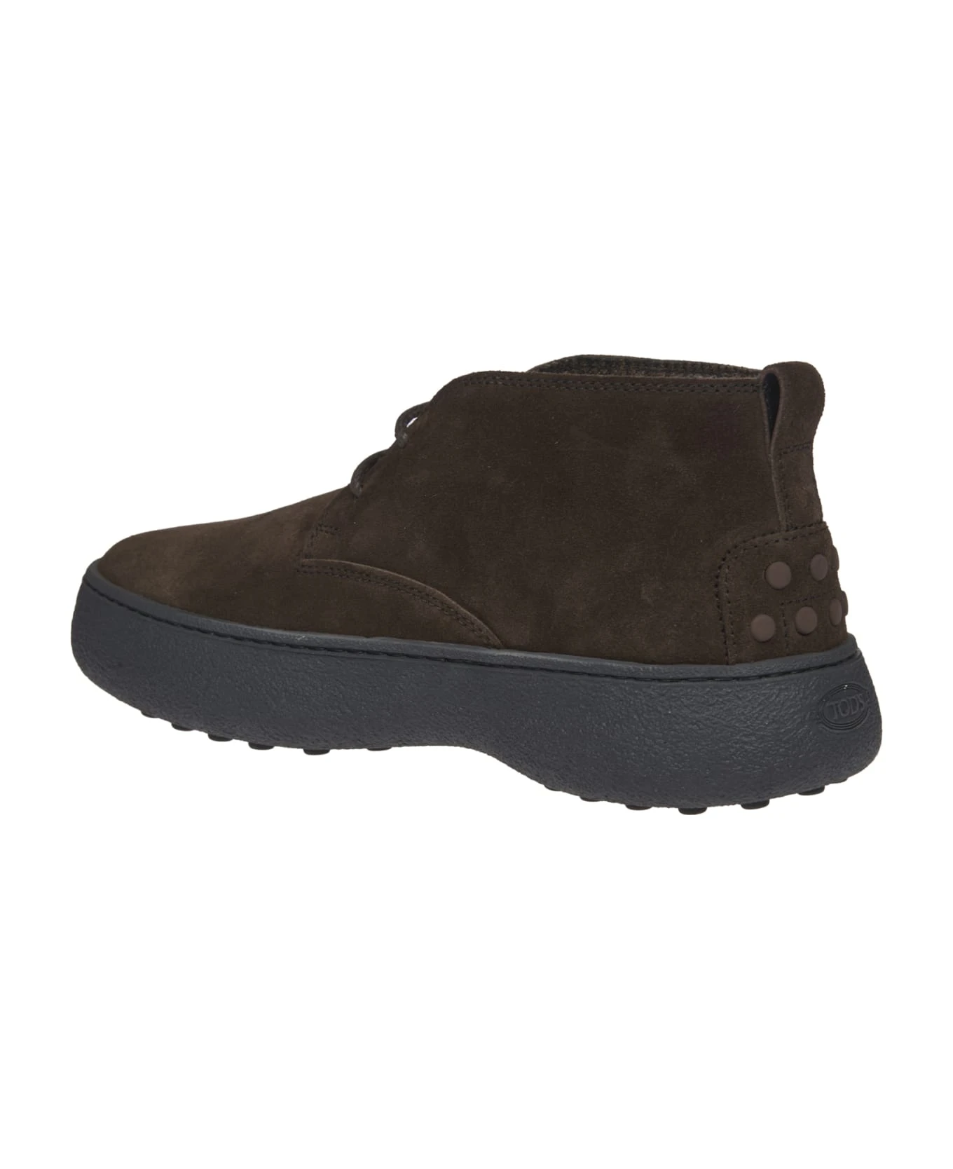 Brown ankle boot. Detail with rubber nubs on the heel. Rubber sole. Sole height: 5 cm. Composition: 100% suede. Made in Italy.