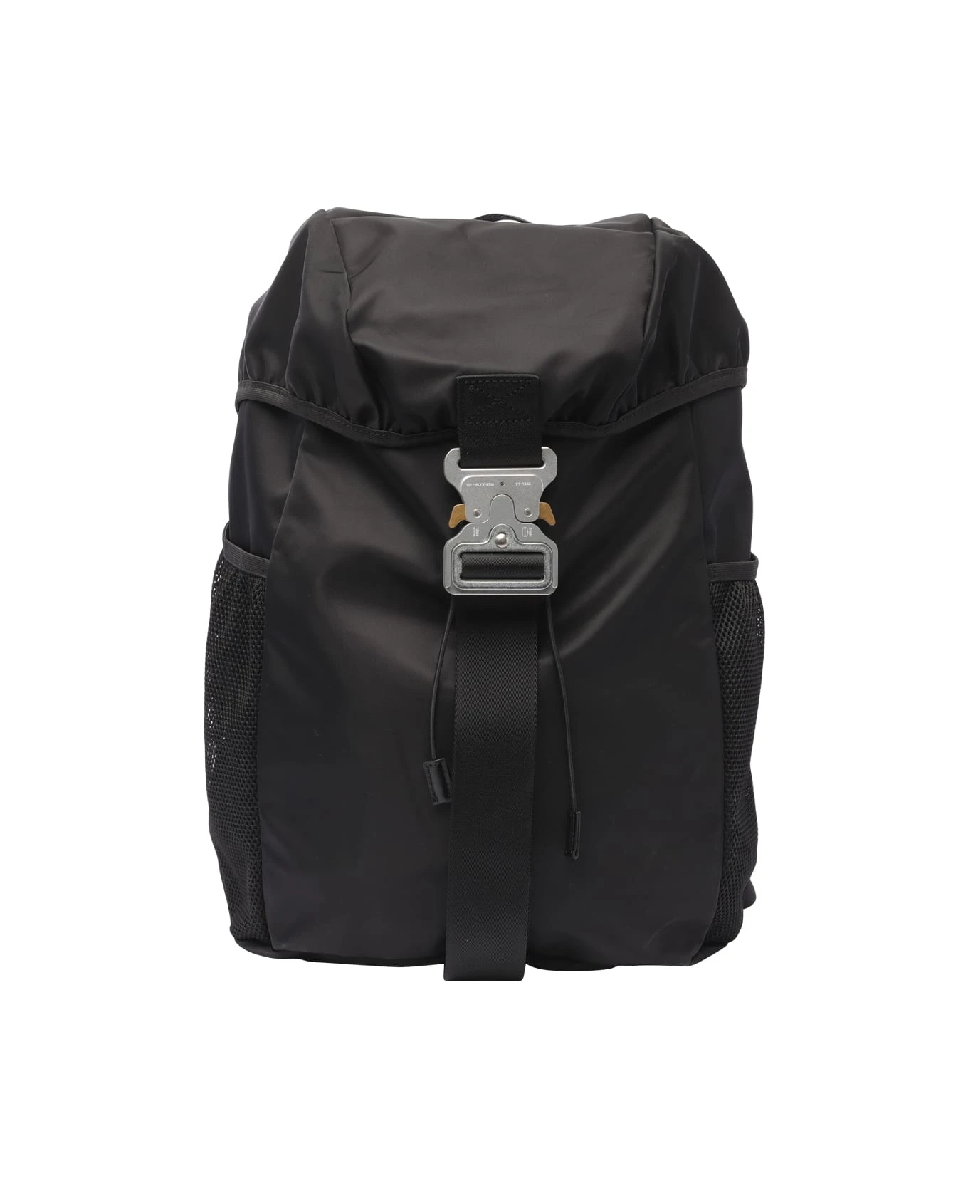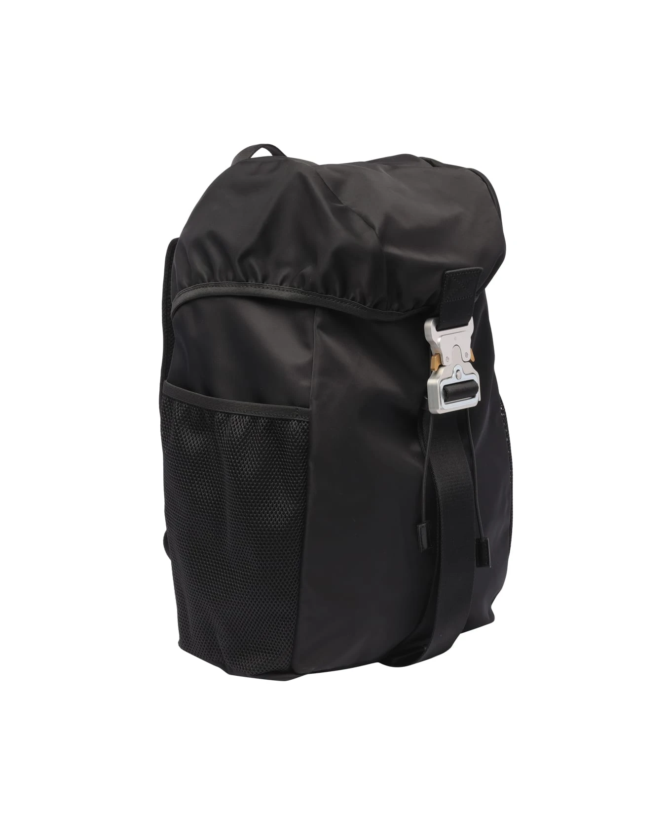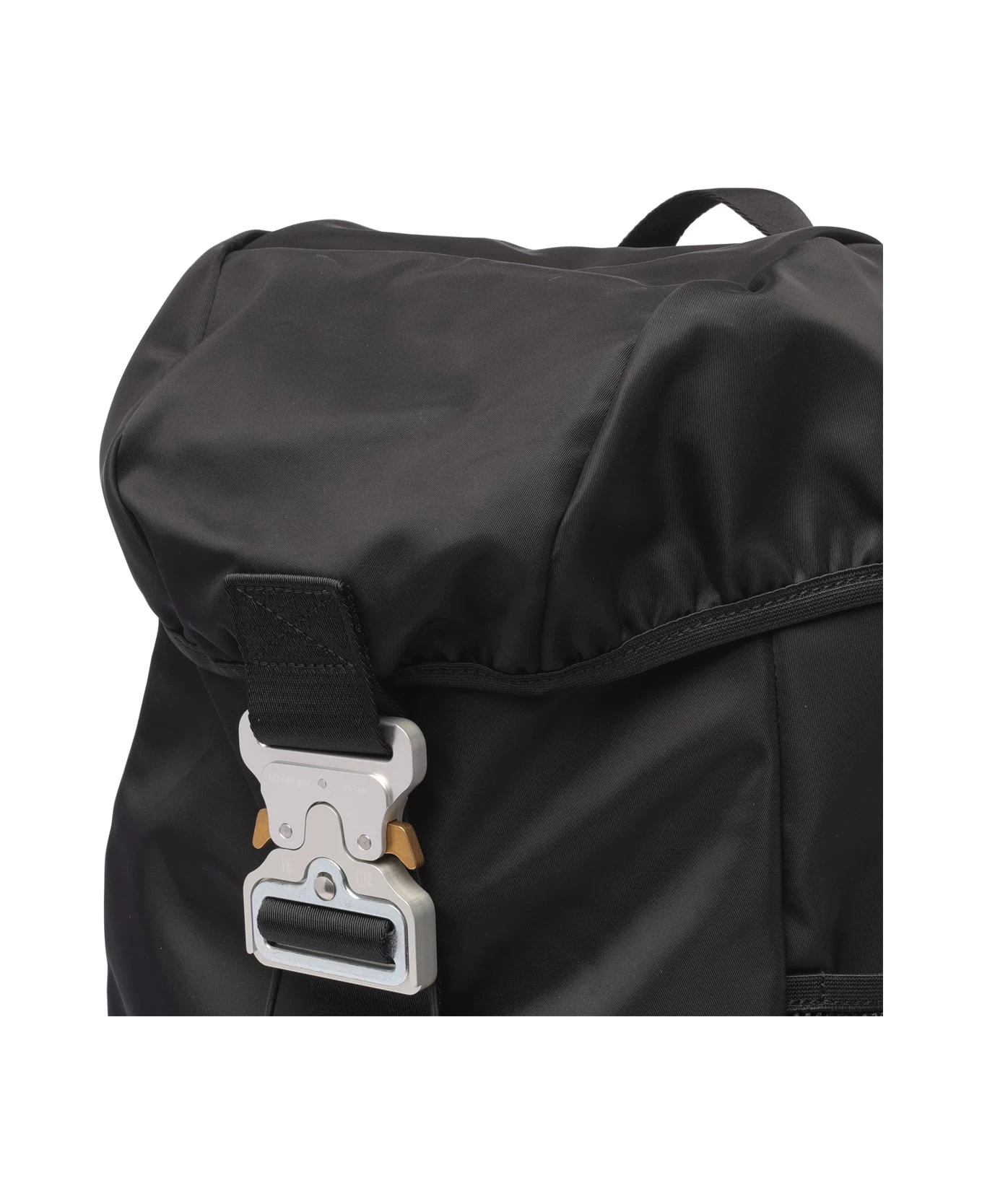Alyx black Tricon backpack with buckle closure, two external open pocket, one inner open pocket, adjustable shoulder strap