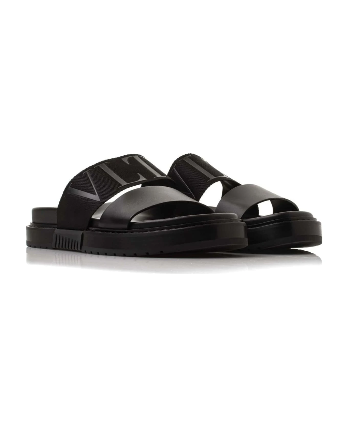 – Composition: 100% calf leather – Inner: Leather – Insole: Leather – Sole: Rubber – Round toe – Open toe – Slip on – VLNT logo relief detail