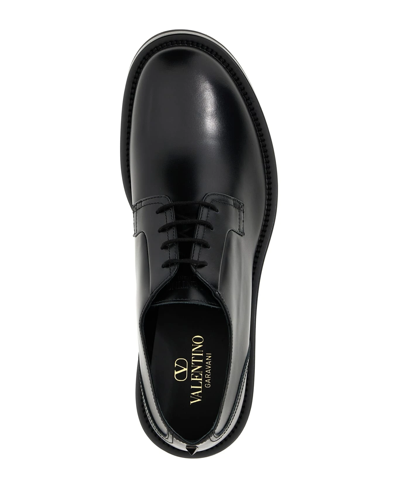 Leather Rockstud lace-ups with tone-on-tone studs, laces, and rubber sole.