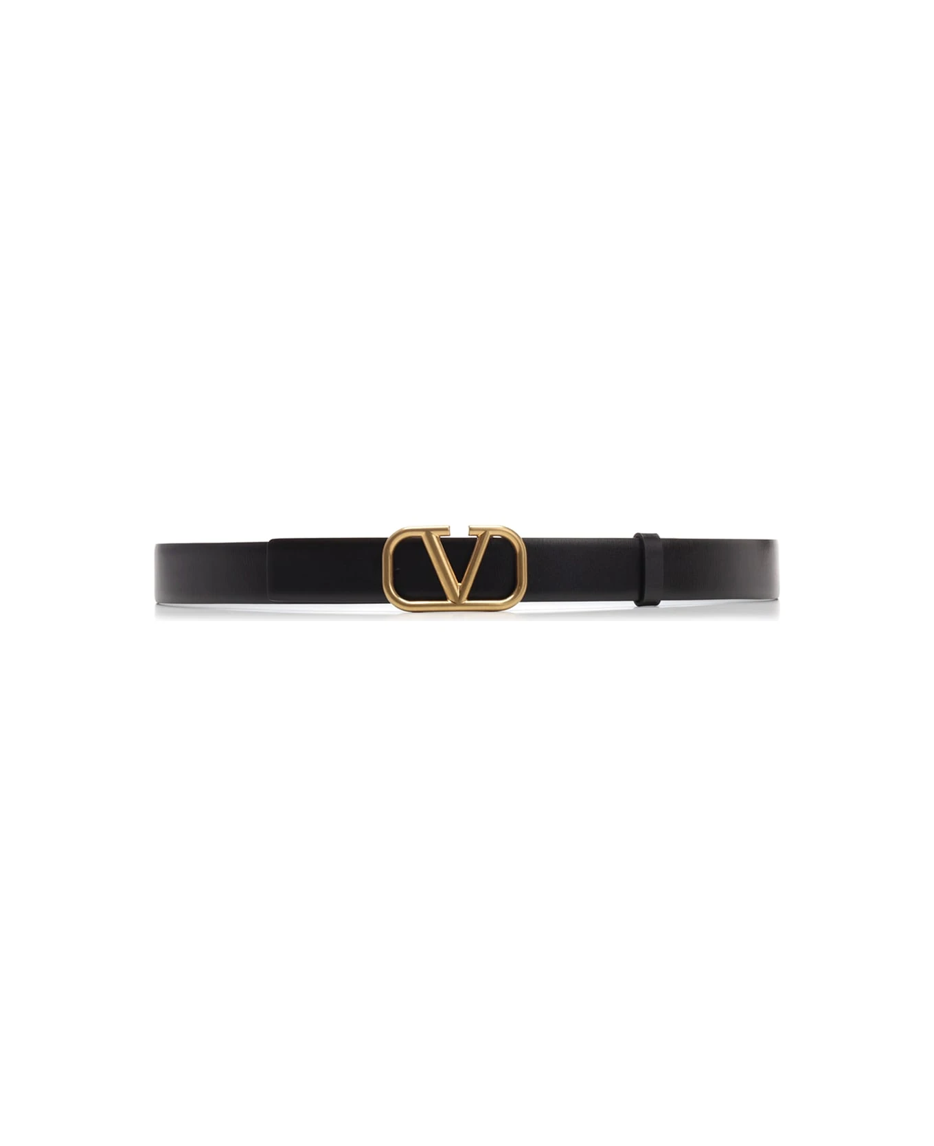 “V logo” black leather belt by Valentino Garavani.