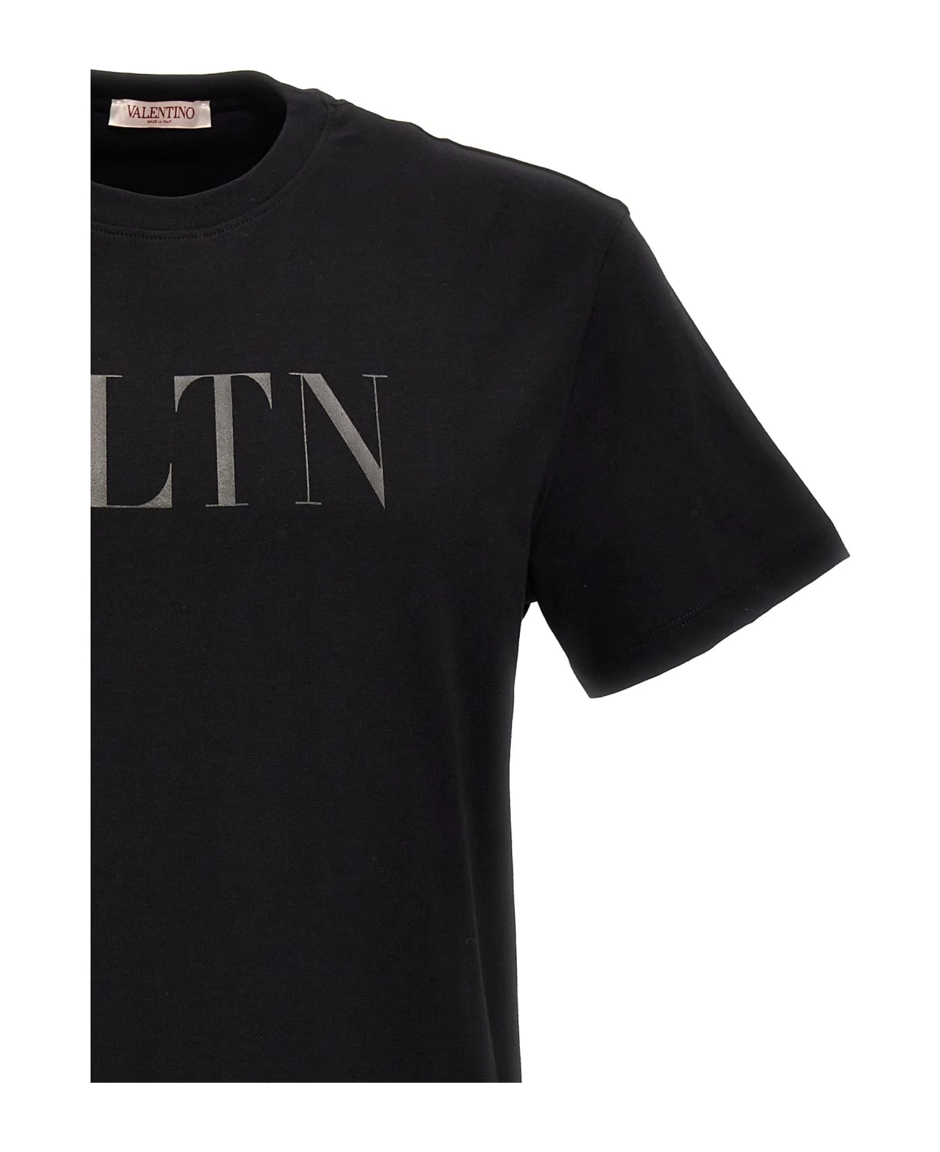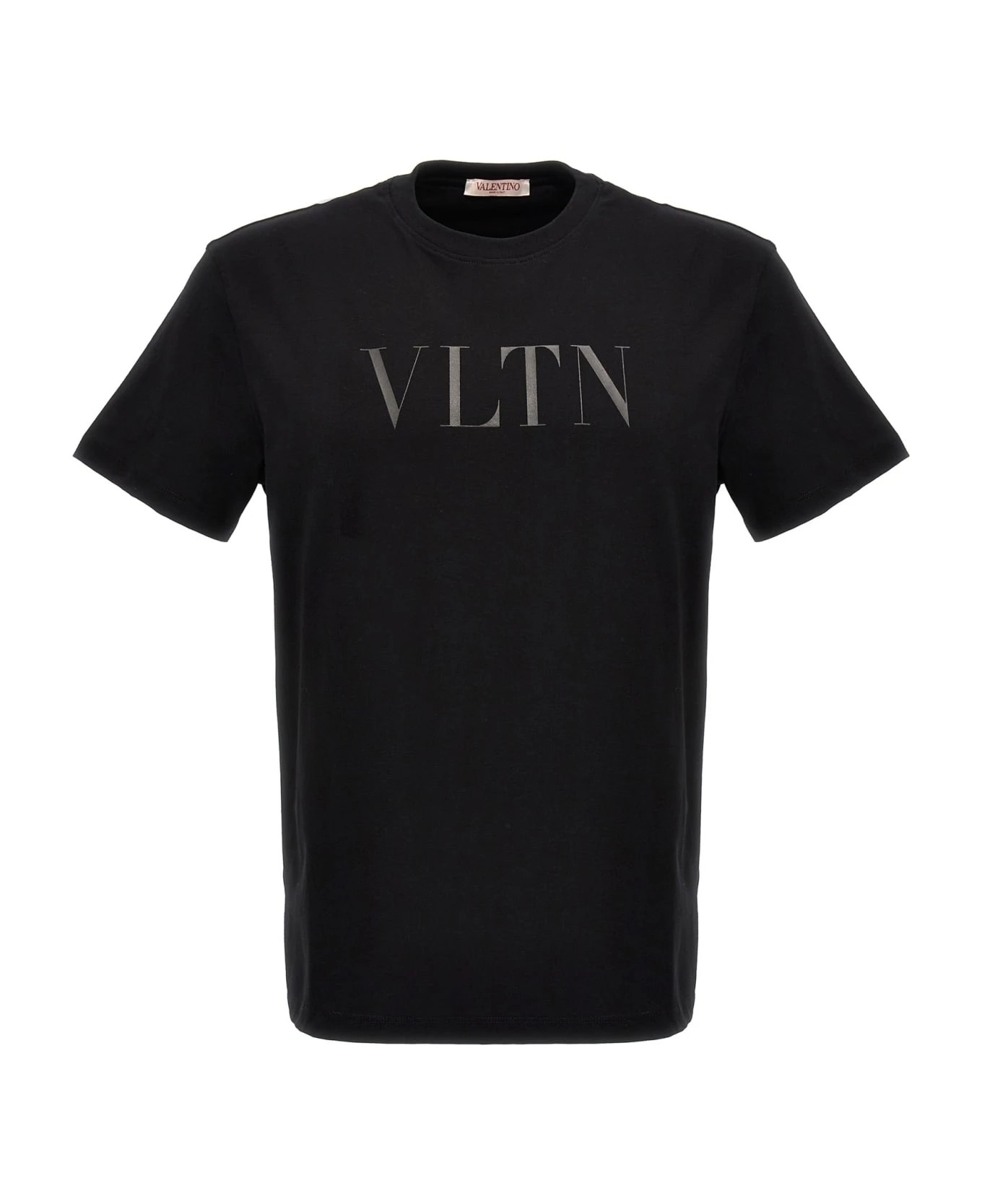 Cotton T-shirt with tone-on-tone front logo print, crewneck, and short sleeves.