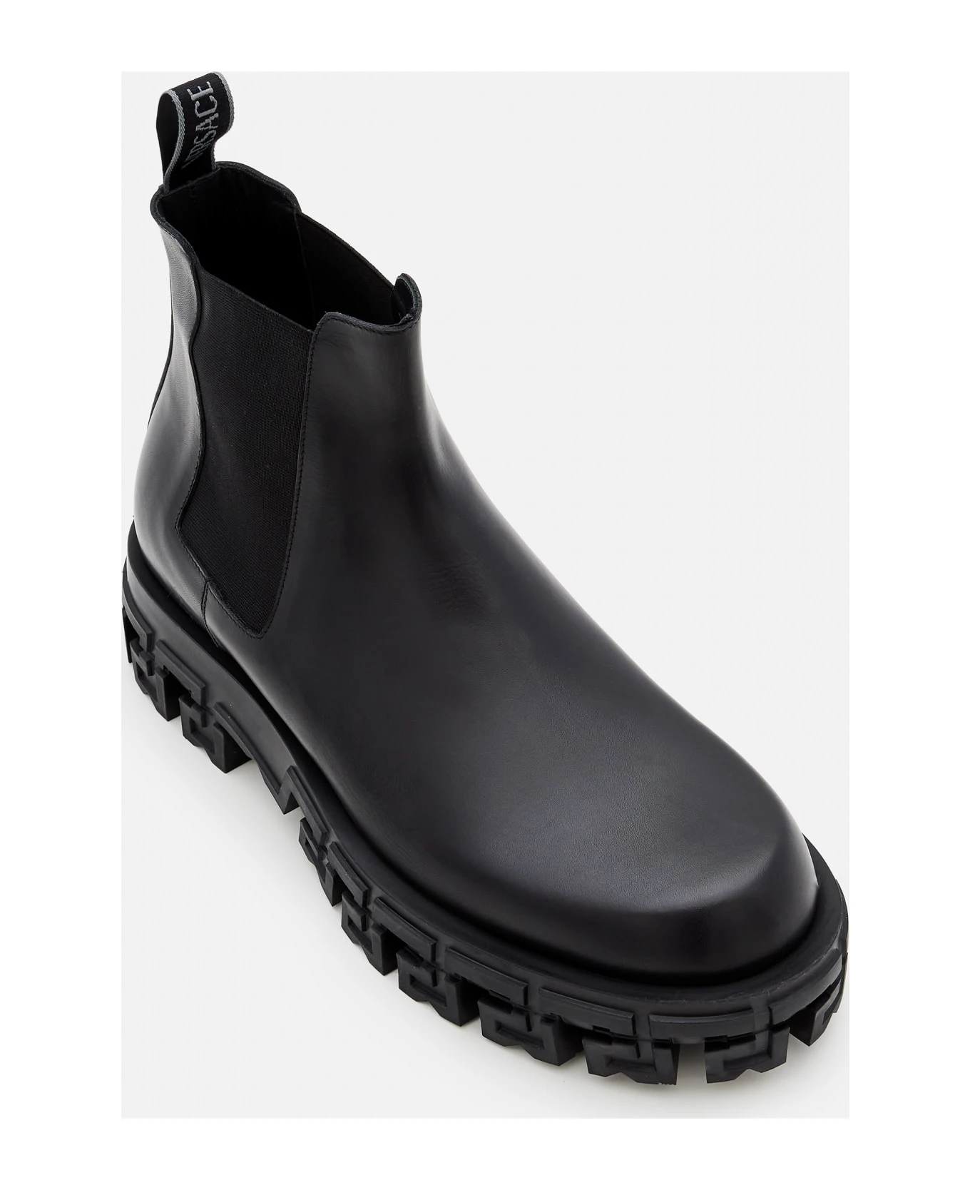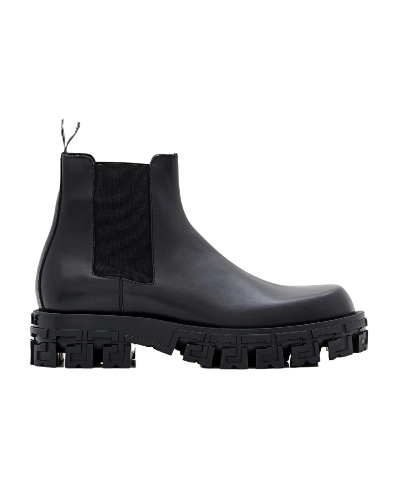 Rubber sole. Leather upper. Color: black.