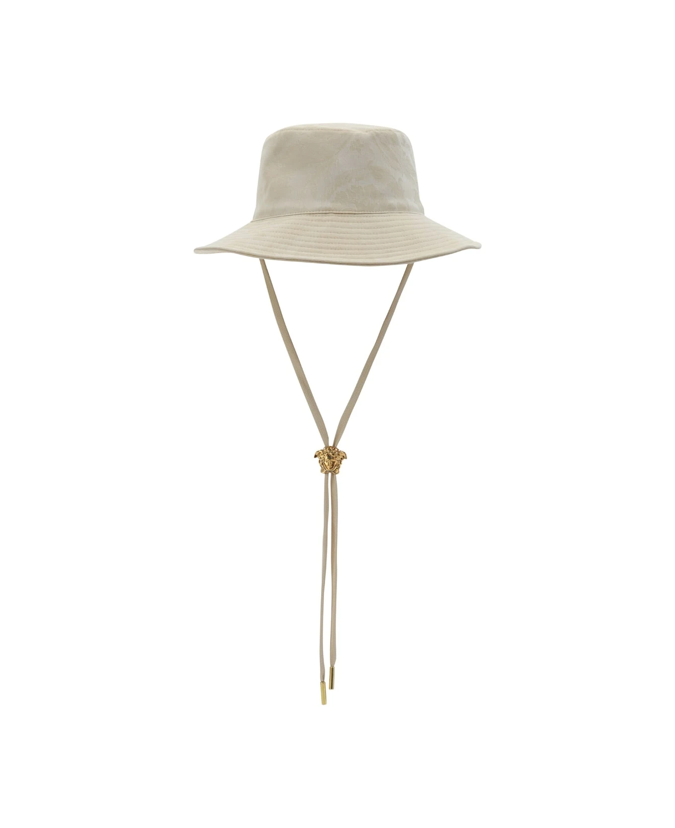 Cotton hat by dua lipa x versace, bucket model, monochrome pattern with jacquard effect, brand’s iconic medusa applied to adjustable drawstring. ‘la vacanza’ collection by dua lipa x versace.