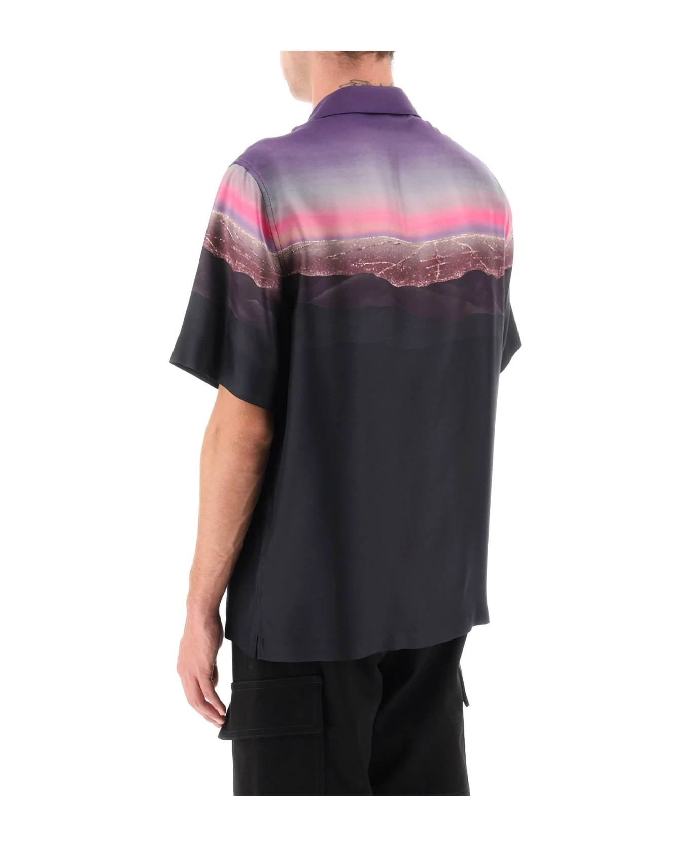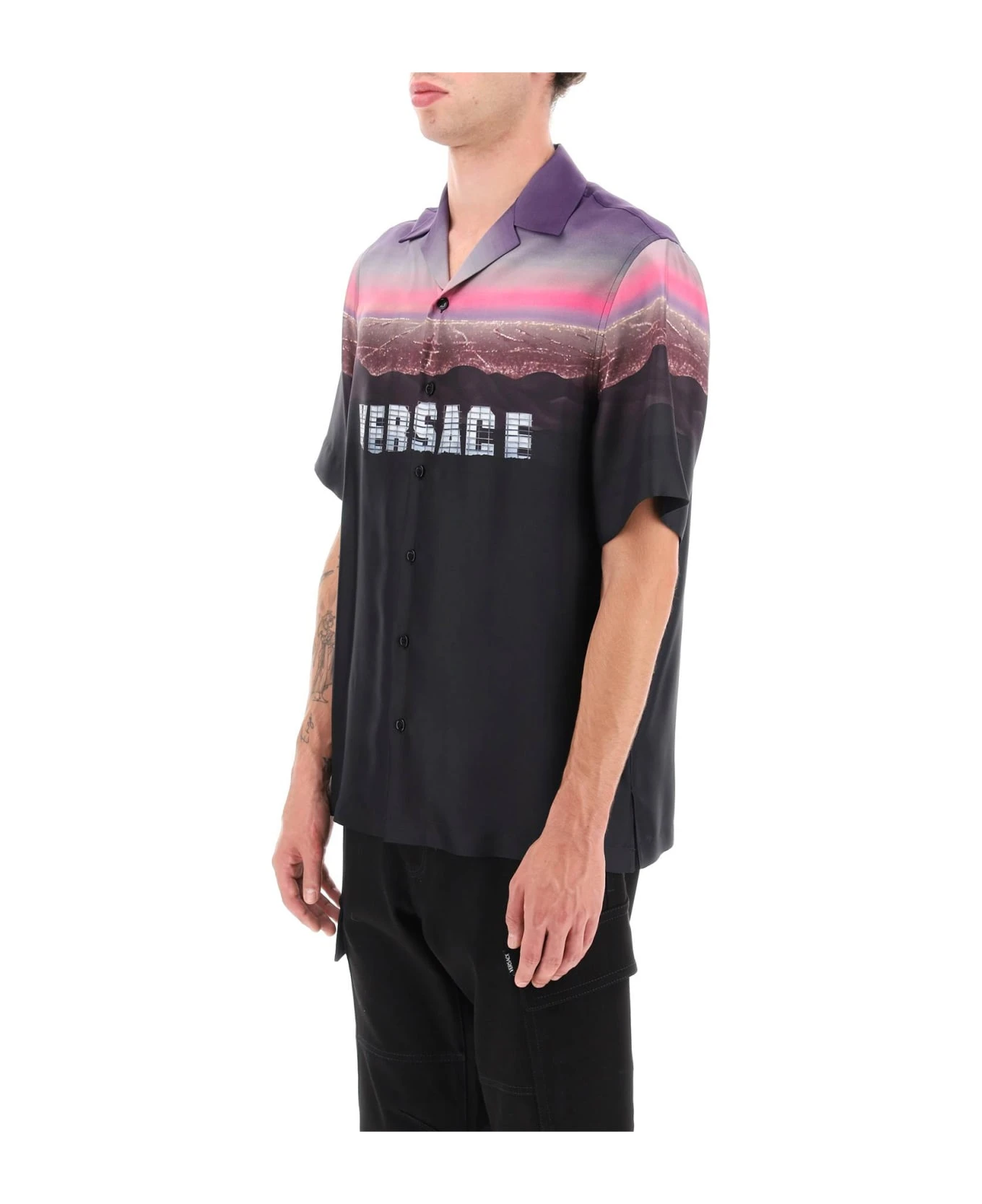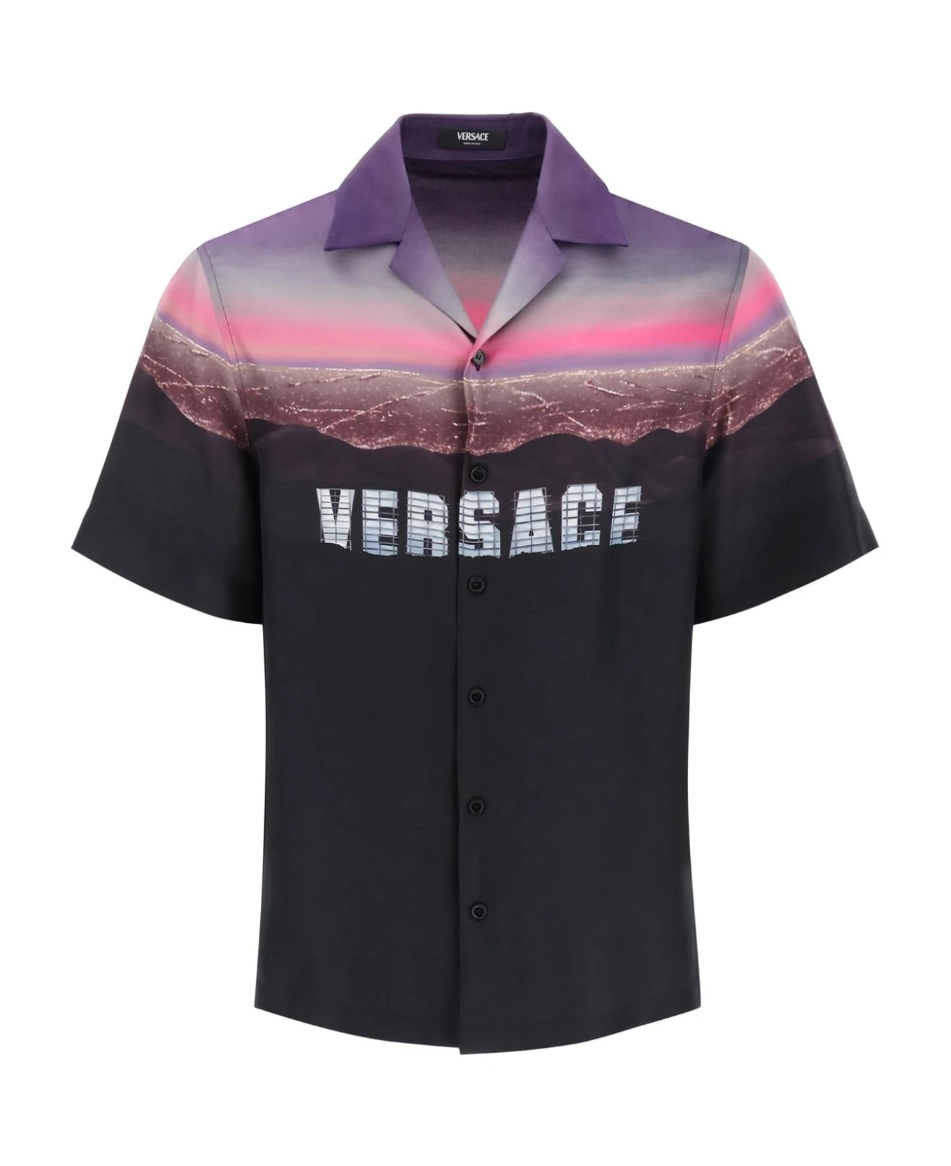 Bowling shirt by Versace crafted in fluid silk twill with Versace Hills motif printed all-over. It features cuban collar, front button placket and side slits on the hem. Regular fit. The model is 187 cm tall and wears size IT 48.