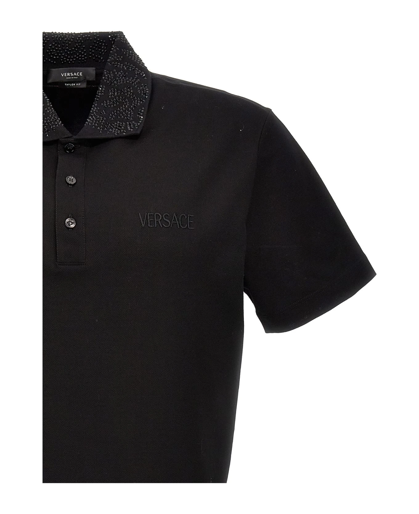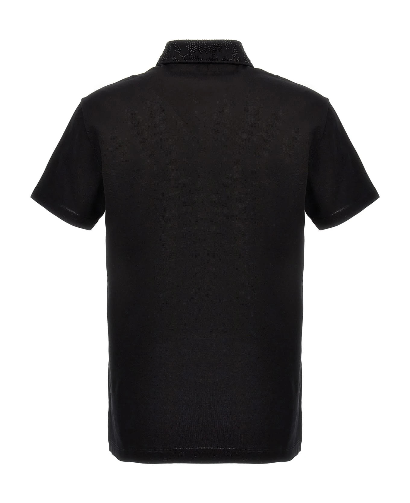 Piqué cotton polo shirt with sequin appliqué on the collar, front logo embroidery and short sleeves.
