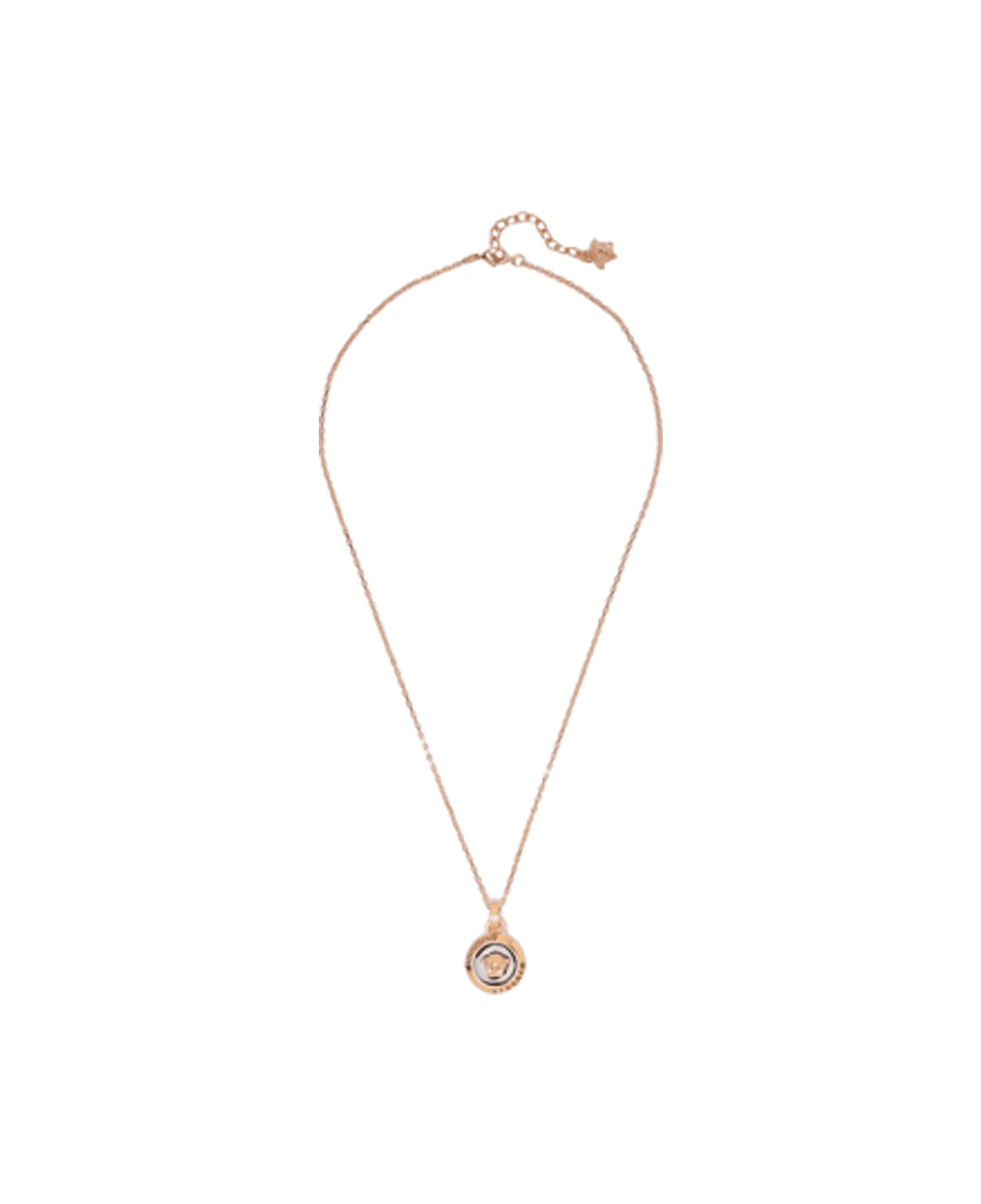 Versace gold and black Medusa necklace, enamel, logo on front, carabiner closure
