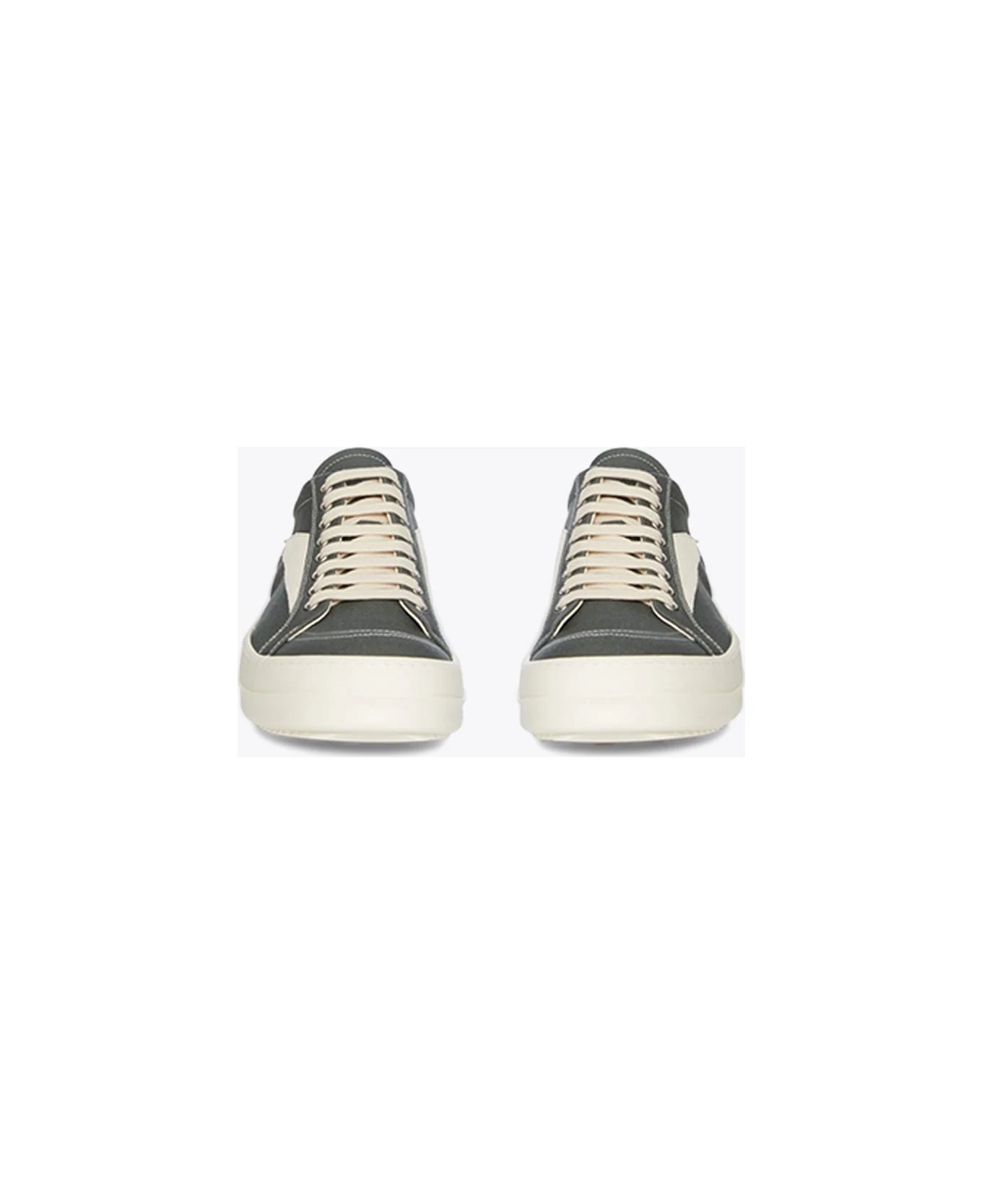 Petrol blue canvas low sneaker with side insert. Off white lace-up fastening. Off white rubber sole. Contrasting stitching detail. Made in Italy.