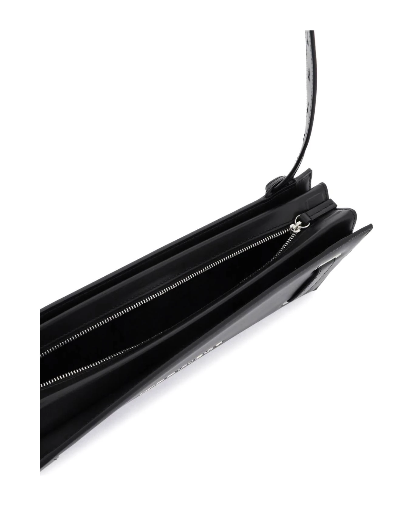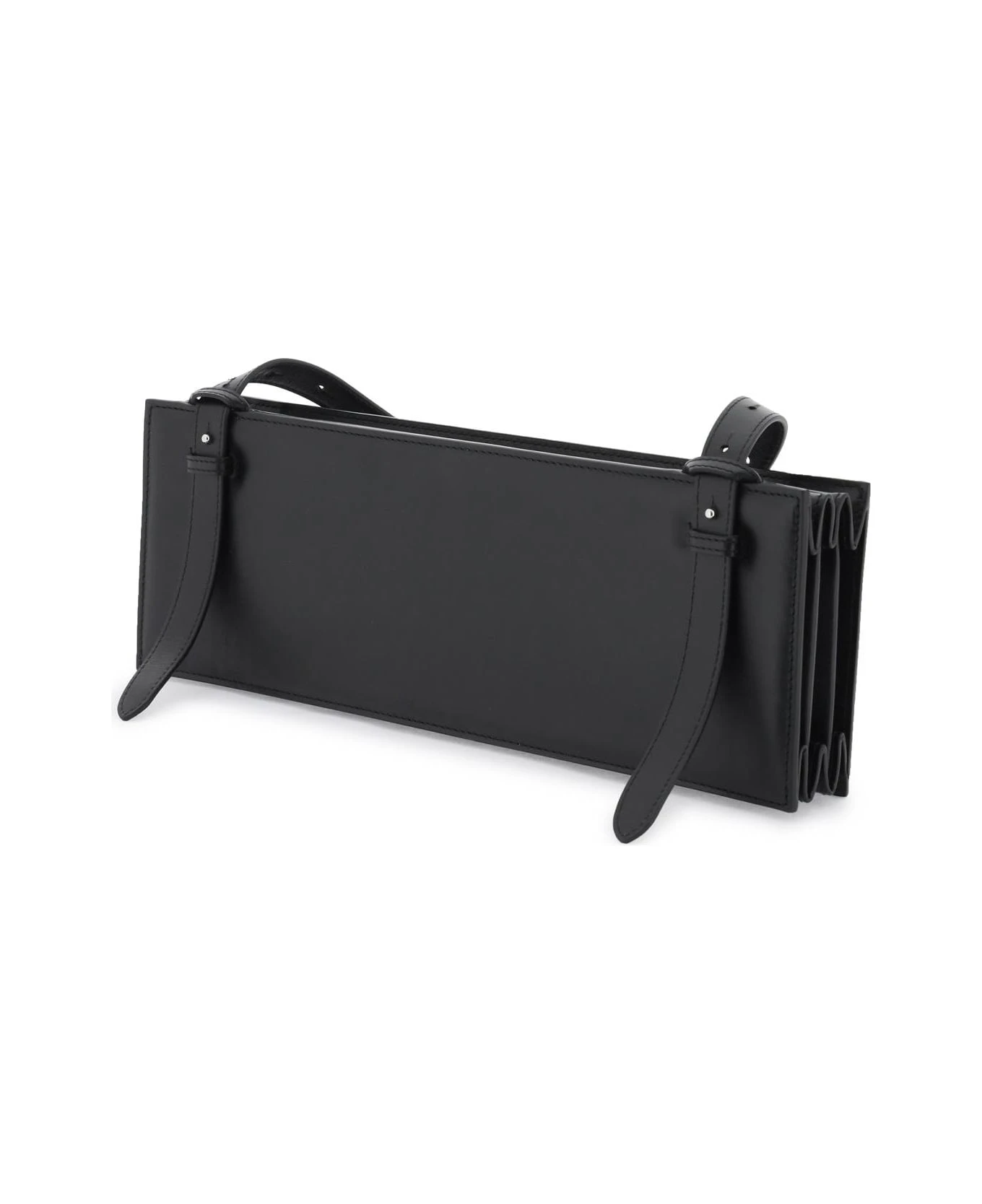 Accordion bag by Y/PROJECT crafted in smooth leather and characterized by an accordion shape with a metal lettering logo at front. It can be carried on the shoulder or crossbody thanks to the adjustable and removable shoulder strap. Zipper and magnet closure, suede interior, silver-tone metal hardware.